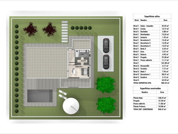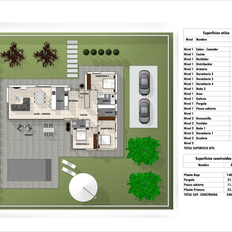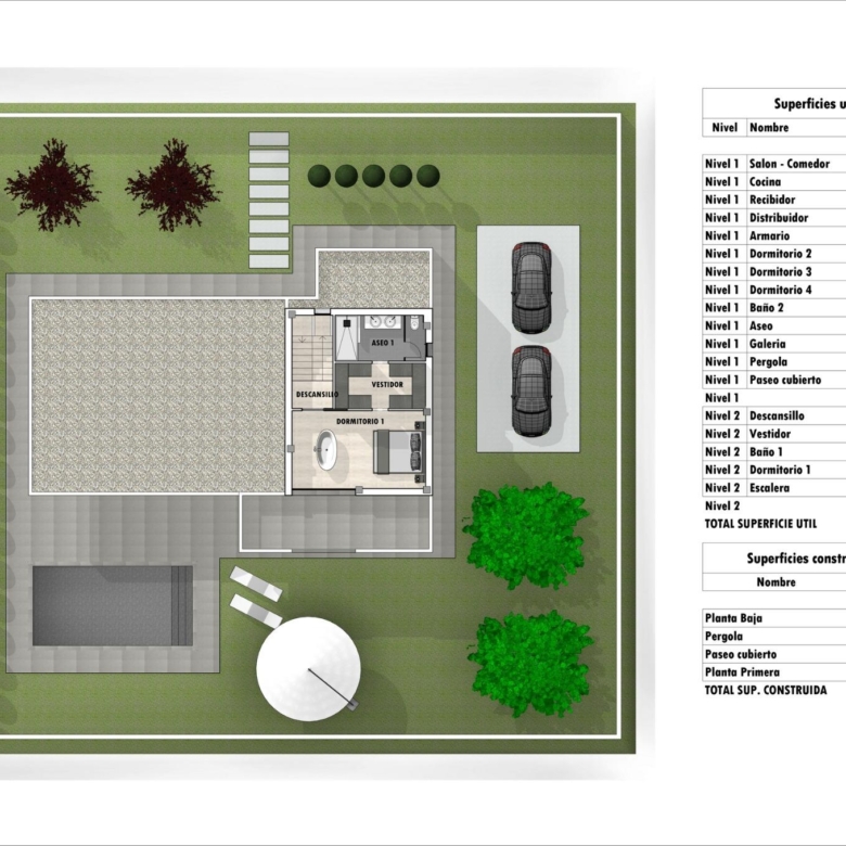 Les villas seront construites sur des parcelles rustiques de 10.959 m2, dont environ 2.000 m2 seront clôturés, avec tous les approvisionnements en eau, électricité, installation d’un ensemble de panneaux photovoltaïques pour l’autoconsommation d’électricité et système d’épuration des eaux usées au moyen d’une station d’épuration par oxydation biologique.