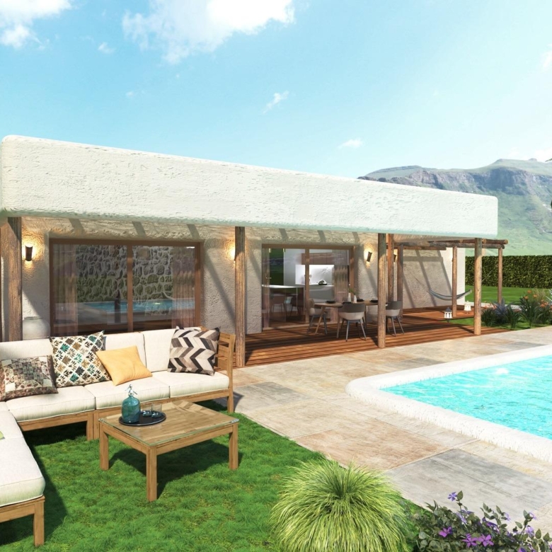 Chaque propriété est située dans une zone clôturée d’environ 2 500 m² au sein d’un terrain rustique de 10 000 m², ce qui garantit une grande intimité et beaucoup d’espace. Les villas comprennent une piscine privée de 8 x 4 m, un porche, un débarras et un parking extérieur privé.