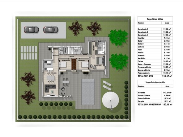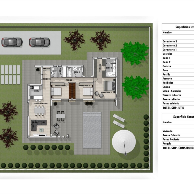 Les villas seront construites sur des parcelles rustiques de 10.959 m2, dont environ 2.000 m2 seront clôturés, avec tous les approvisionnements en eau, électricité, installation d’un ensemble de panneaux photovoltaïques pour l’autoconsommation d’électricité et système d’épuration des eaux usées au moyen d’une station d’épuration par oxydation biologique.