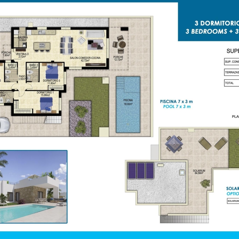 Les acheteurs ont le choix entre deux modèles de villas, disponibles sur un ou deux étages. Pour ceux qui souhaitent optimiser leur espace extérieur, un solarium privé est disponible en option, offrant des vues panoramiques sur la mer – l’endroit idéal pour profiter du soleil méditerranéen qui brille dans la région la majeure partie de l’année.