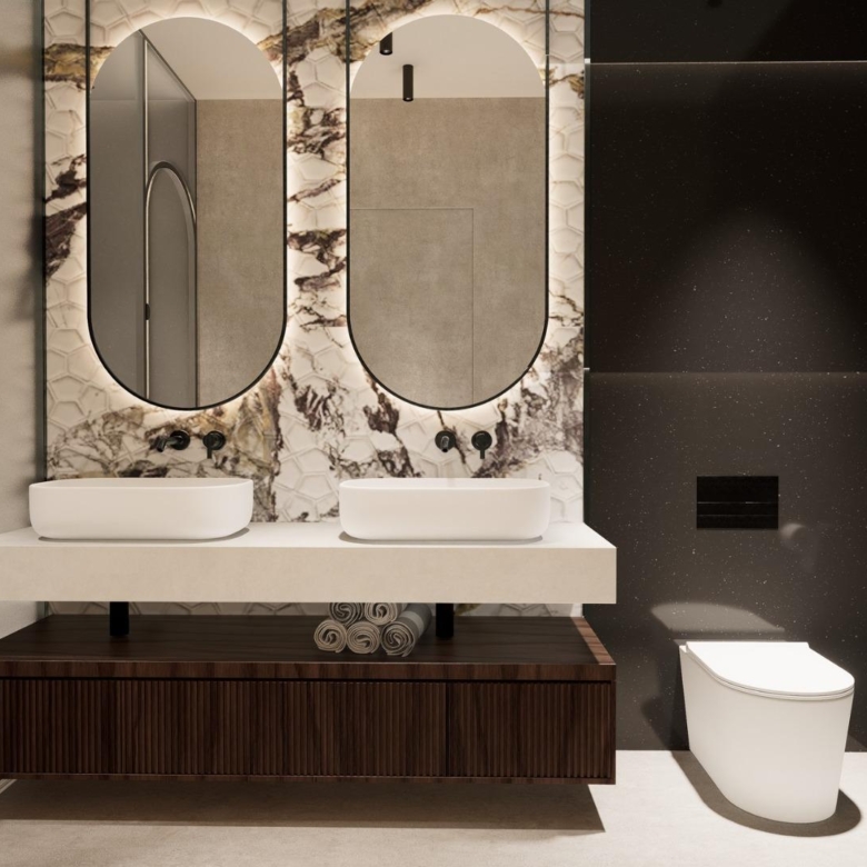 – Suite parentale avec salle de bain en-suite et dressing et deux chambres doubles avec salle de bain pour les invités.