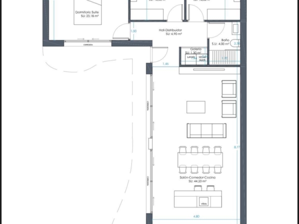 – Armoires encastrées avec portes coulissantes de couleur claire. Finition intérieure complète.