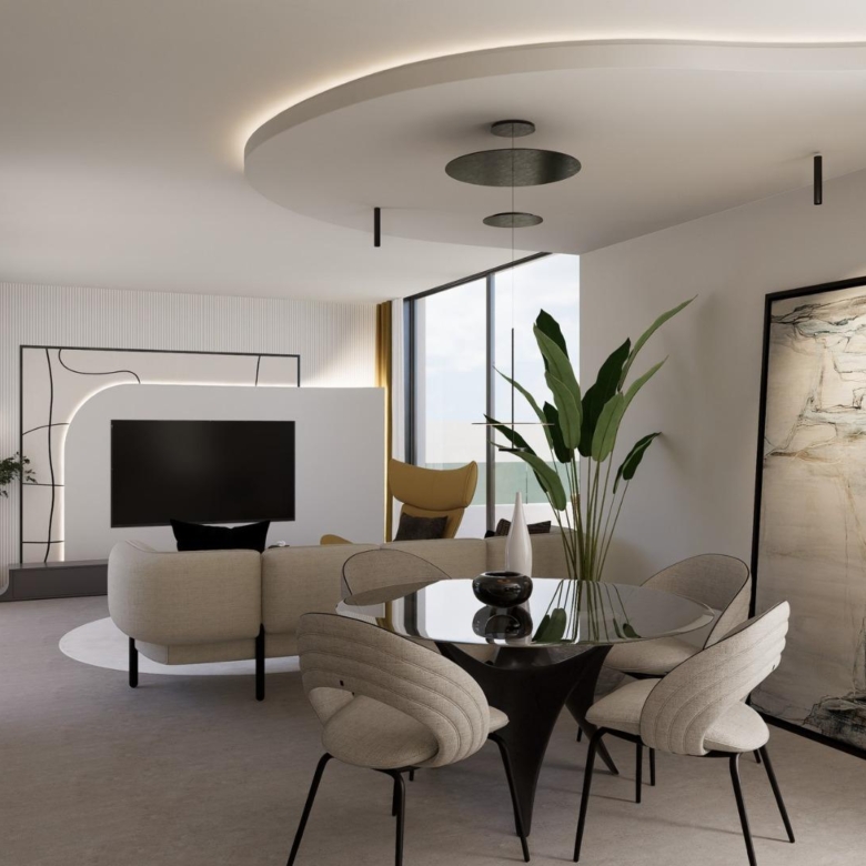 – Salon et salle à manger spacieux avec de grandes fenêtres créant une zone de confort avec la lumière naturelle dans toute la maison.