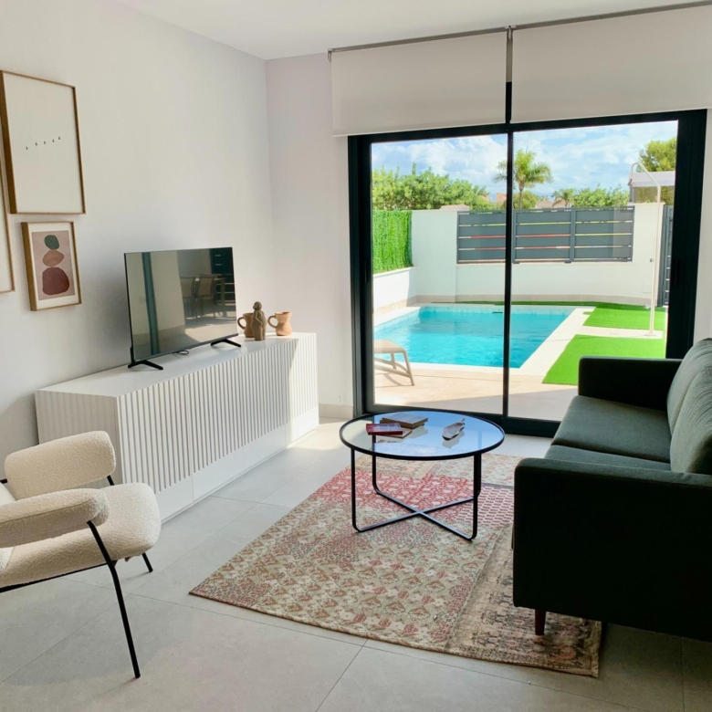Situation parfaite avec vue sur le terrain de golf, à 20 minutes de l’aéroport de Murcie et à 10 minutes de la Mar Menor et des plages méditerranéennes.