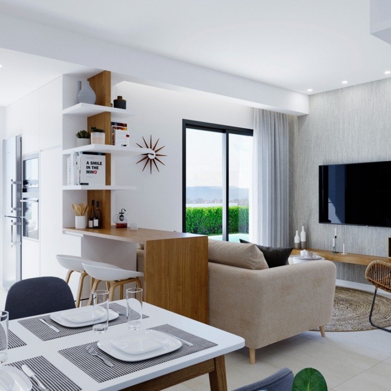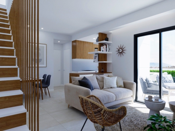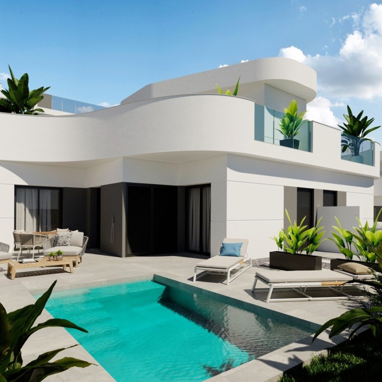 Nouveau complexe résidentiel de villas jumelées et de bungalows situé à Los Balcones avec vue sur le lac rose.