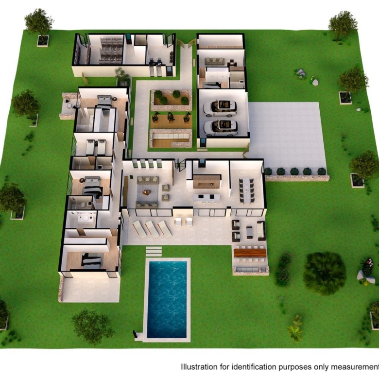 Différents modèles de distribution sont proposés, mais il est également possible de réaliser un design totalement personnalisé. Les modèles standard présentent une maison spacieuse de plain-pied avec 6 chambres, 5 salles de bain, des espaces ouverts et pleins de vie, où l' »intérieur » et l' »extérieur » se fondent parfaitement et où la lumière naturelle domine.