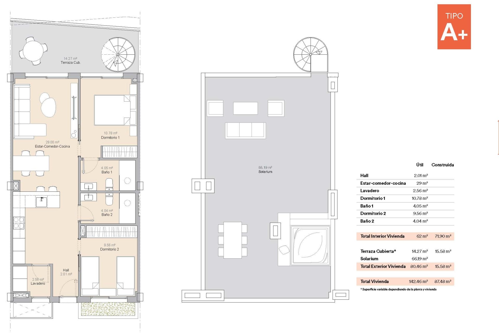 L'intérieur des logements est conçu pour offrir un maximum de confort et de fonctionnalité. Les sols en grès cérame apportent une touche d'élégance et sont faciles à entretenir. Toutes les propriétés sont équipées de la climatisation, assurant une ambiance agréable tout au long de l'année. Les appareils modernes facilitent la vie quotidienne, tandis que les placards intégrés offrent un rangement efficace et ordonné. La distribution des logements est pensée pour optimiser l'espace, avec de vastes espaces de vie qui s'intègrent parfaitement aux terrasses, créant un flux continu entre l'intérieur et l'extérieur.