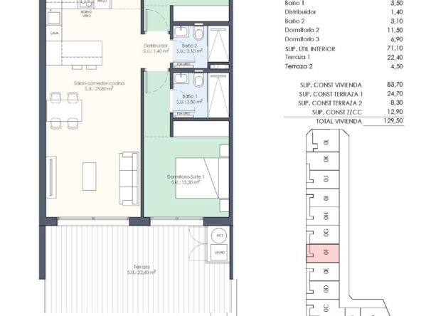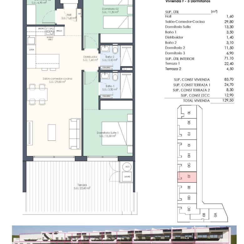 Residentiële bestaat uit 35 appartementen en penthouses met 2, 3 en 4 slaapkamers en 2 badkamers, open keuken met de woonkamer, inbouwkasten, terrassen.