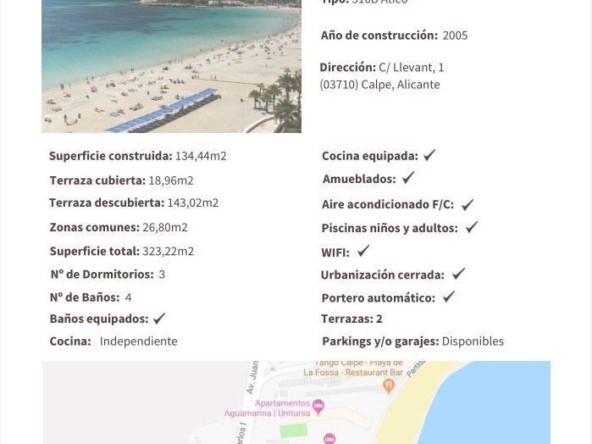 Just 800 meters from the Rock of Ifach and approximately 2.5 km from the town center. fabulous duplex penthouses with spectacular views. Its common areas consist of swimming pools, garden areas, jacuzzi and parking spaces.