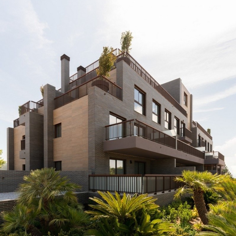 Wooncomplex van vier gebouwen met 3 verdiepingen, geïntegreerd in een weelderige tuin van palmbomen en aromatische planten, waarin de beste afwerkingen en materialen zijn gebruikt om de perfecte omgeving te creëren voor uw plezier en comfort.
