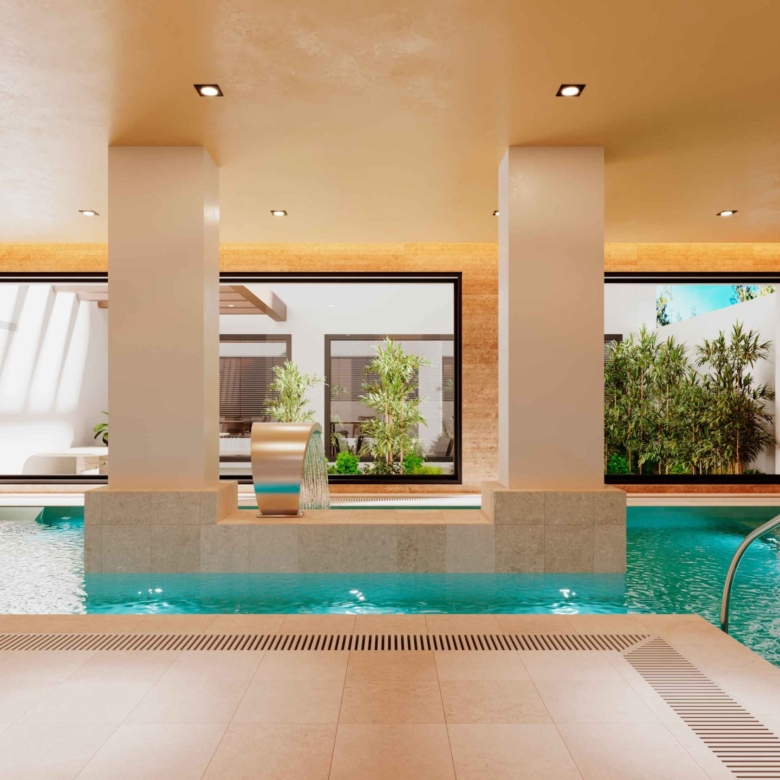De gemeenschappelijke ruimtes van deze residentie in Estepona zijn ontworpen om een actieve en sociale levensstijl te bevorderen. Bewoners kunnen genieten van een gemeenschappelijk zwembad, ideaal om af te koelen tijdens de warme zomerdagen. De gemeenschappelijke fitnessruimte is uitgerust met alles wat nodig is om een gezonde levensstijl te behouden zonder het huis te verlaten. Bovendien beschikt de residentie over een spa, die een ruimte biedt voor ontspanning en welzijn. Voor extra gemak is er een gemeenschappelijke garage en parkeermogelijkheden, zodat bewoners altijd een veilige plek hebben voor hun voertuigen. Deze faciliteiten maken van deze residentie een perfecte plek om te genieten van het gemeenschapsleven, met alle voorzieningen binnen handbereik.