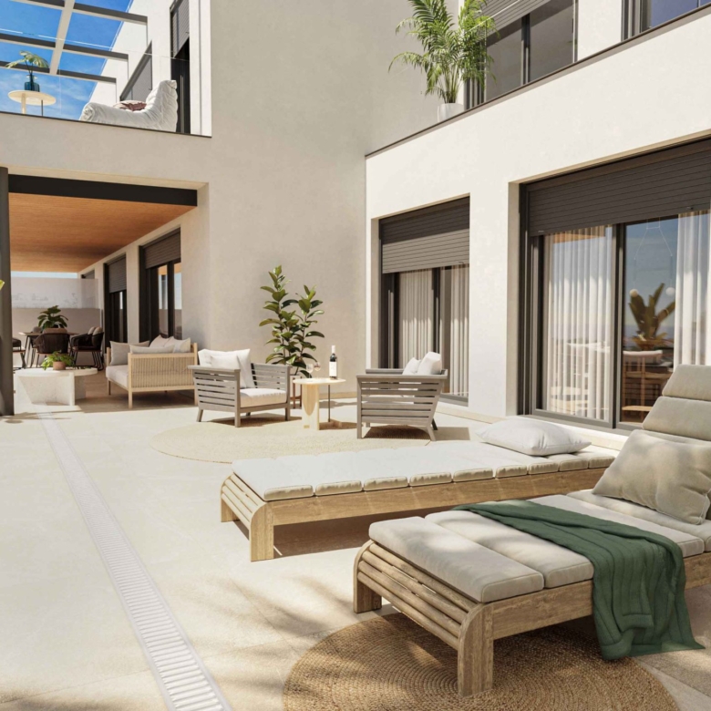 Het interieur van de woningen in deze residentie in Estepona is ontworpen met een focus op kwaliteit en comfort. De woningen zijn beschikbaar in configuraties van 2 en 3 slaapkamers, met 2 of 3 badkamers, aangepast aan de behoeften van verschillende gezinnen. De afwerkingen omvatten porseleinen tegelvloeren, die een moderne en elegante uitstraling geven. De woningen zijn volledig gemeubileerd en uitgerust met hoogwaardige apparatuur. Technologie speelt ook een belangrijke rol, met domoticasystemen, vloerverwarming en elektrische rolluiken, wat zorgt voor een comfortabele en efficiënte omgeving. Ingebouwde kasten bieden veel opbergruimte, terwijl de video-intercom een extra beveiligingsniveau toevoegt.