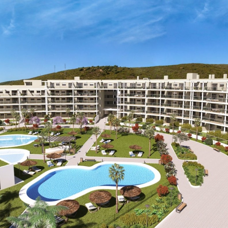 Nieuw complex van 2 en 3 slaapkamer appartementen met uitzicht op zee, open keuken met de woonkamer, inbouwkasten, parkeerplaats met berging en gemeenschappelijke tuinen met de zwembaden en ontspanningsruimtes.