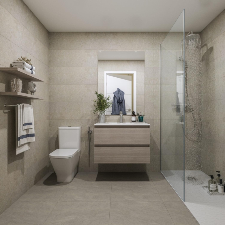 De gemeenschappelijke ruimten van het project zijn ontworpen om comfort en luxe te bieden, met aangelegde ruimten die je in contact brengen met de natuur, een zwembad met een ontspannend strand met ligstoelen en een gastroteca die de perfecte plek wordt om te socializen en te genieten van speciale momenten.