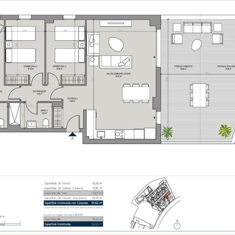 De blokken zijn verdeeld in begane grond, 2 verdiepingen en penthouse, waardoor een verscheidenheid aan woningtypes wordt gegarandeerd om aan je behoeften te voldoen.