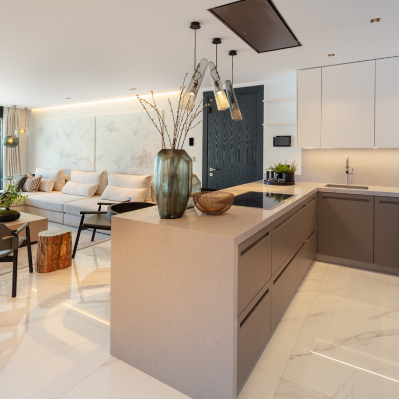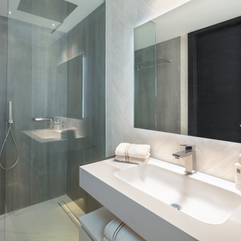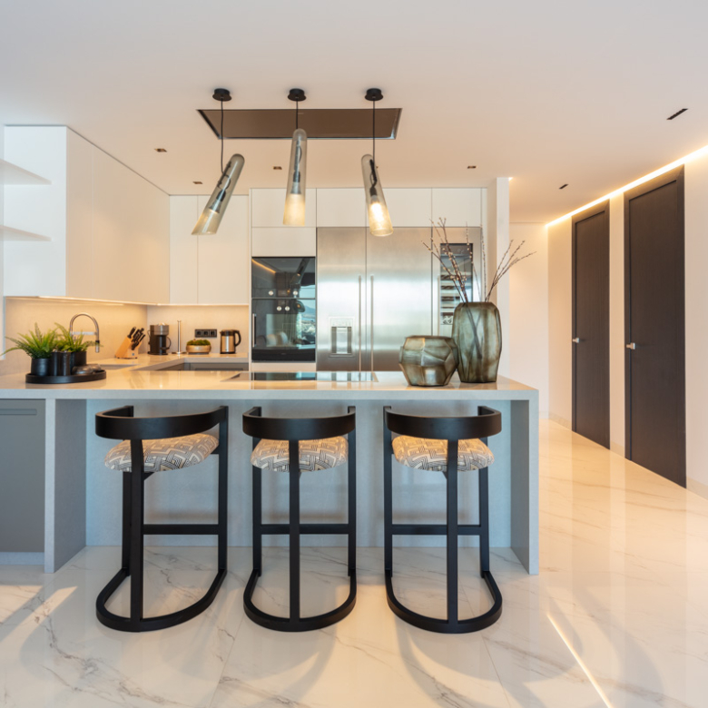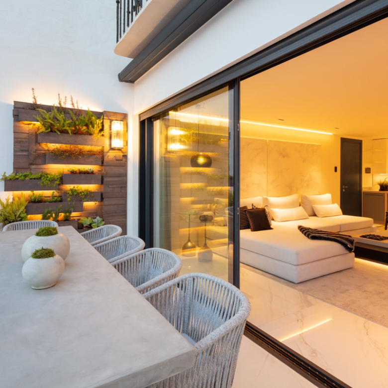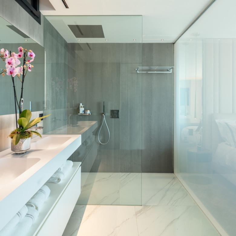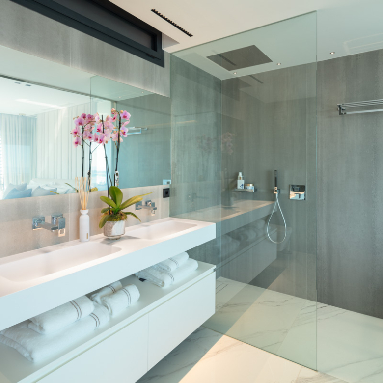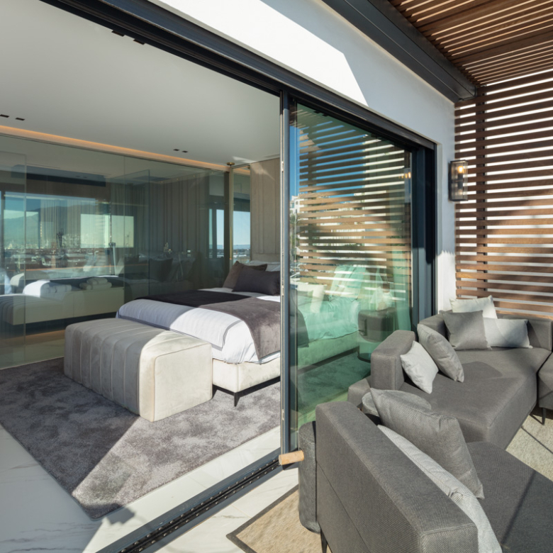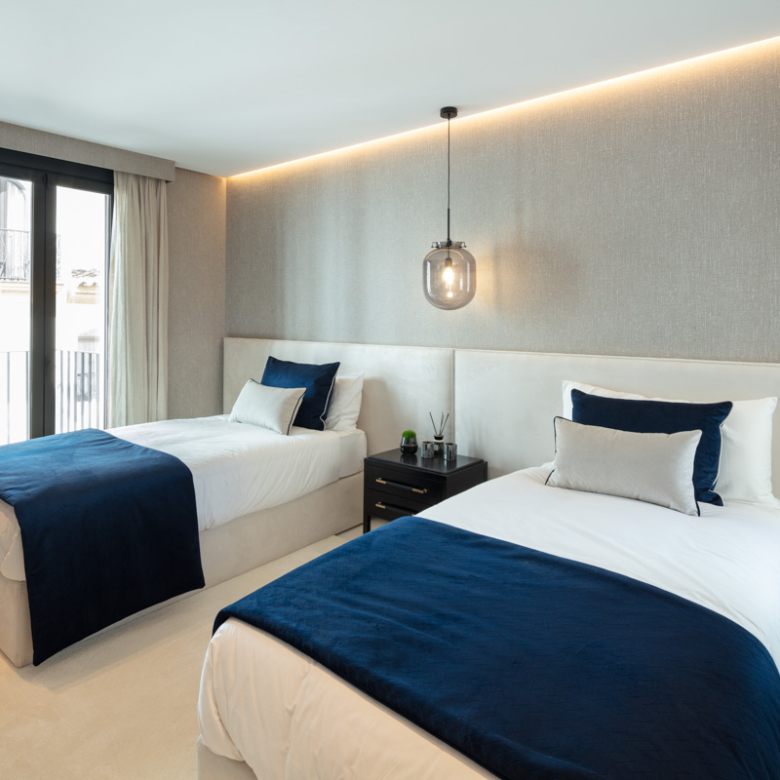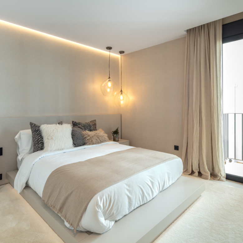 Het interieur van het appartement is ontworpen om maximaal comfort en luxe te bieden. Het beschikt over drie slaapkamers en drie badkamers, allemaal uitgerust met vloerverwarming om het hele jaar door een aangename temperatuur te garanderen. De woning is volledig gemeubileerd en beschikt over de nieuwste generatie apparaten. Bovendien is er een domoticasysteem geïntegreerd dat het mogelijk maakt om verschillende aspecten van het huis eenvoudig en efficiënt te bedienen. Elektrische rolluiken en airconditioning maken de uitrusting van deze exclusieve woning compleet. De porseleinen tegelvloeren geven elke kamer een vleugje elegantie en moderniteit.