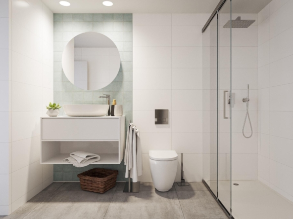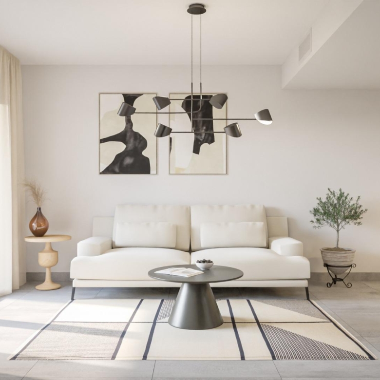 Lichte ruimtes met mediterrane accenten, waar elegantie en warmte elkaar ontmoeten. Met afwerkingen in neutrale tinten en overwegend wit bieden deze appartementen een serene en gastvrije sfeer.