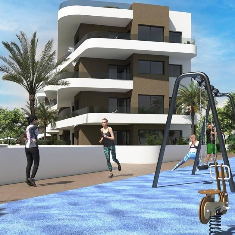De appartementen in dit complex hebben grote terrassen, perfect om te genieten van het zonnige mediterrane klimaat. Elke woning heeft een parkeerplaats in een ondergrondse garage en een berging voor extra gemak. De appartementen op de begane grond hebben een privétuin, terwijl de penthouses ruime solariums hebben – ideaal om van de zon te genieten en het uitzicht te bewonderen.