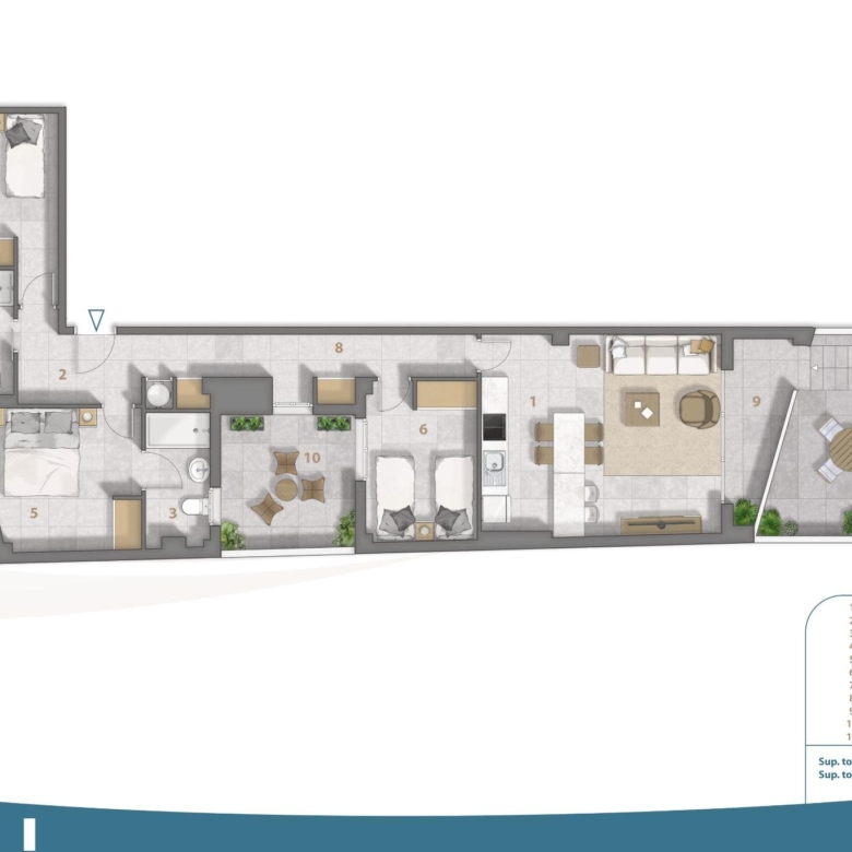 Zes penthouses op de 2e verdieping hebben een uniek kenmerk – directe toegang tot hun privésolarium via hun terrassen.