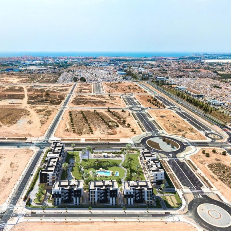 Deze ontwikkeling ligt in de groeiende wijk La Hoya, tussen de natuurlijke zoutlagunes van La Mata en Torrevieja, en biedt een perfecte balans tussen rust en gemak. Op slechts 3,5 km van de stranden van Torrevieja kunnen bewoners snel gebruikmaken van dagelijkse voorzieningen zoals supermarkten, restaurants, gezondheidscentra, fietsroutes en het natuurpark La Mata om te wandelen. Het bruisende stadscentrum van Torrevieja, met theaters, bioscopen, winkelcentra, ziekenhuizen en het waterpark Aquopolis, ligt op slechts een klein eindje rijden.