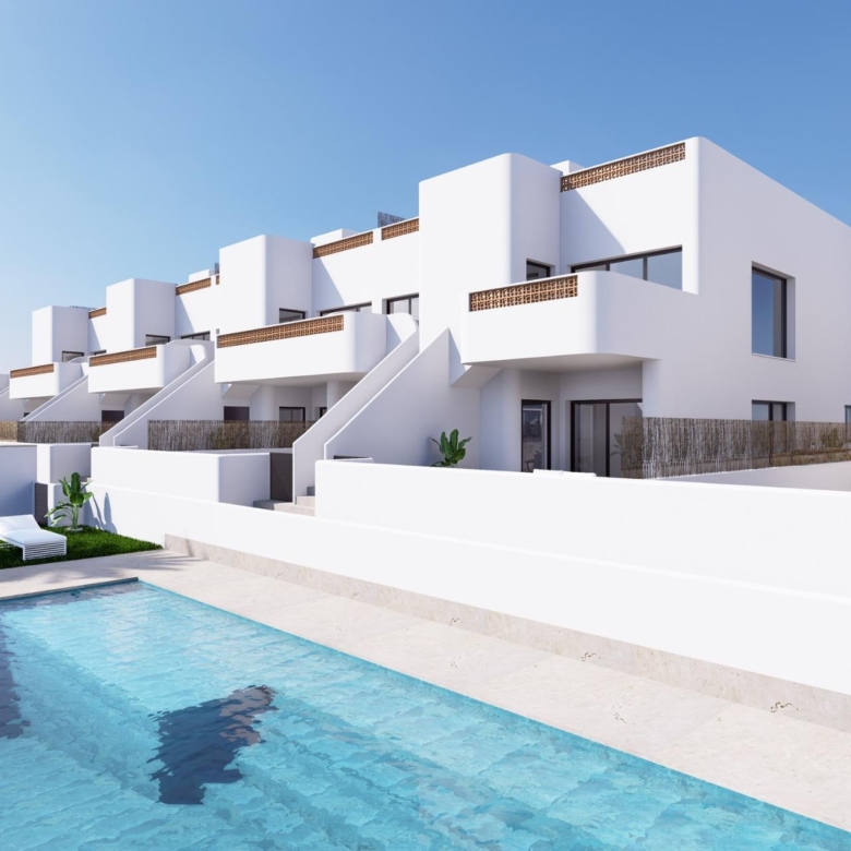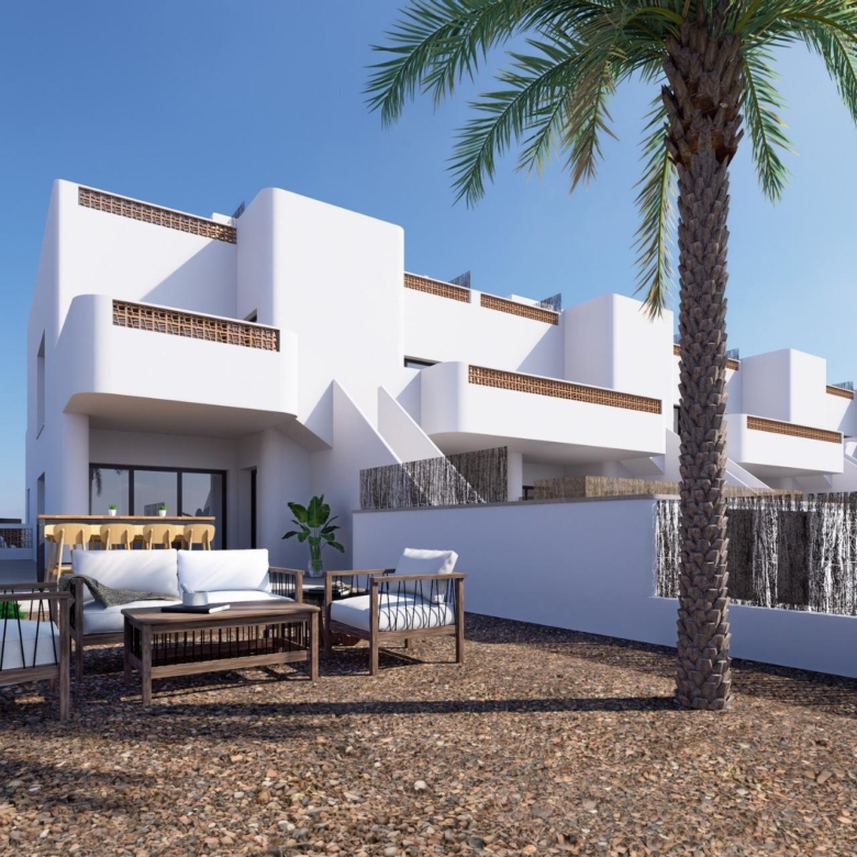 Residentieel met gelijkvloerse woningen met tuin of bovenste verdieping met privésolarium, met 3 slaapkamers en 2 badkamers, bevinden zich in Dolores (Alicante), een bevoorrechte zone van de Costa Blanca, gelegen naast het natuurpark El Hondo, omgeven door natuur en voorzien van alle diensten.