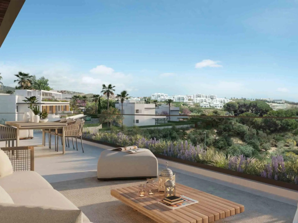 De buitenruimtes van deze woningen zijn ontworpen om optimaal te genieten van het mediterrane klimaat. Elke bungalow heeft een privétuin, perfect om een persoonlijke oase van rust te creëren. De ruime terrassen bieden een ideale ruimte om buiten te ontspannen, terwijl het solarium een exclusieve plek biedt om in alle privacy te zonnebaden. Bovendien maakt de aanwezigheid van een privézwembad in elke woning het mogelijk om op elk moment van een verfrissende duik te genieten. De optie van een privégarage zorgt voor comfort en veiligheid voor het parkeren van voertuigen.