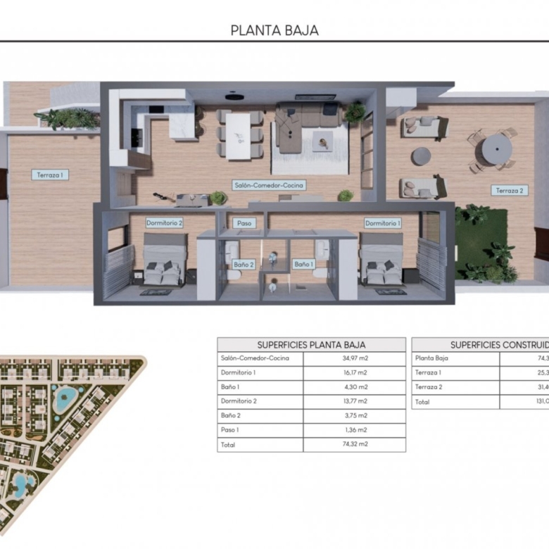 Residential bestaat uit 136 luxe bungalow appartementen gebouwd met top kwaliteit materialen. Elk heeft een magisch uitzicht op de Laguna Rosa de Torrevieja en de Middellandse Zee.