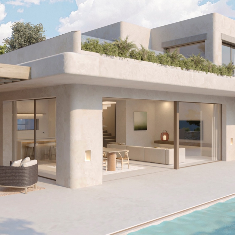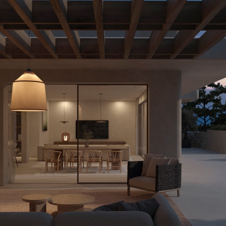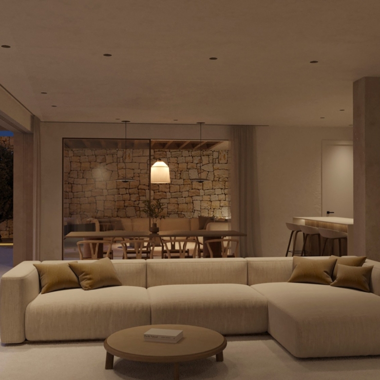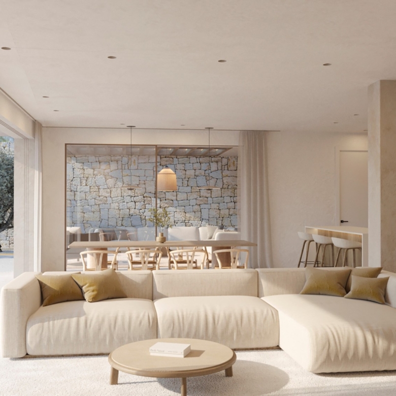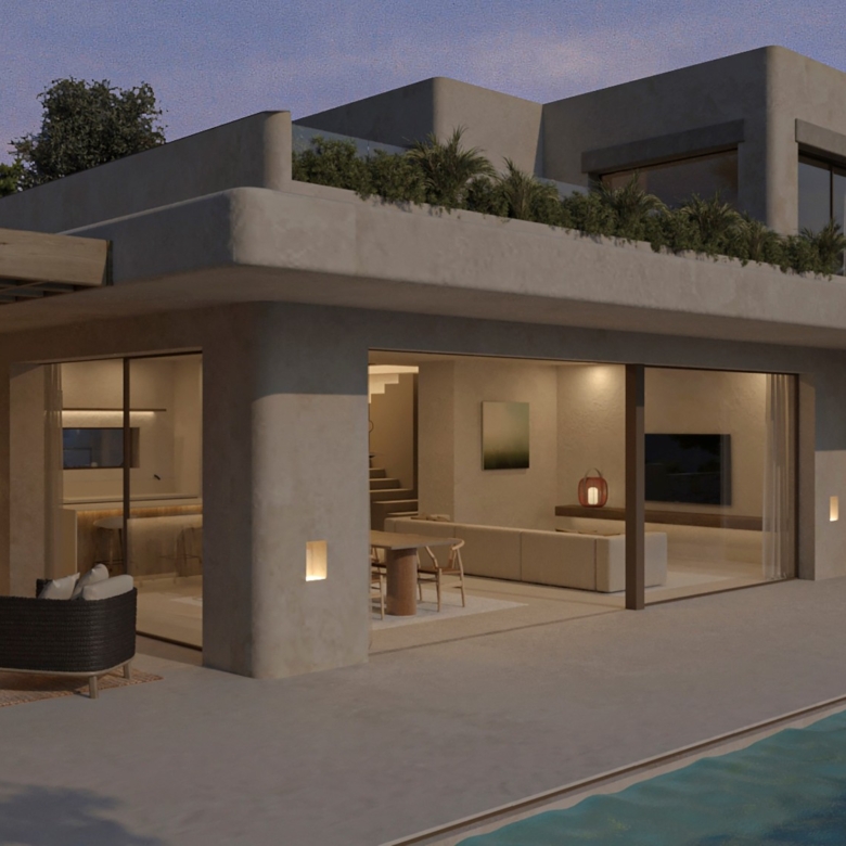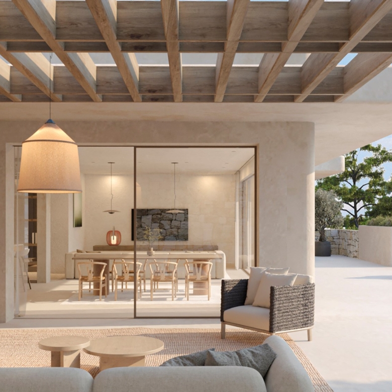 De architectuur van Moraira Natura belichaamt een verfijnde Ibizaanse stijl. Gebouwd met hoogwaardige materialen, beschikt deze villa over een uniek ontwerp dat natuurlijk licht optimaliseert en binnen- en buitenruimtes naadloos met elkaar verbindt.