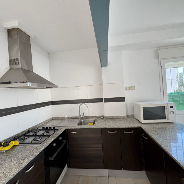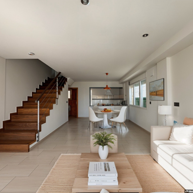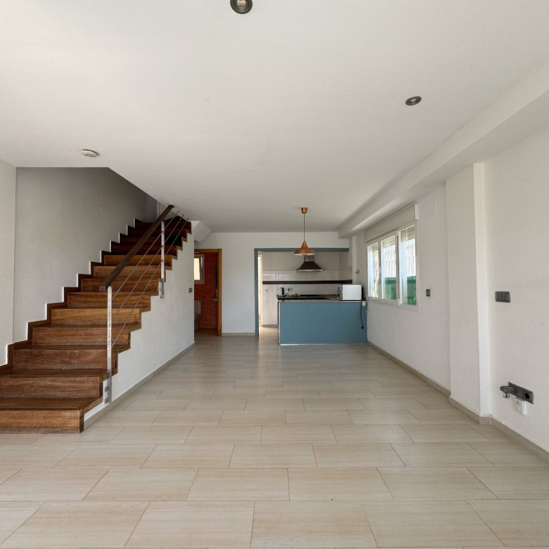 Deze drie verdiepingen tellende tussenwoning met 200 m² bebouwde oppervlakte is een van die zeldzame kansen in Jávea. Gelegen op loopafstand van supermarkten, winkels en voorzieningen, combineert het het gemak van een centrale ligging met de luxe van een privégarage met directe toegang tot de woning, ruime zonnige terrassen en een rustige, intieme sfeer.