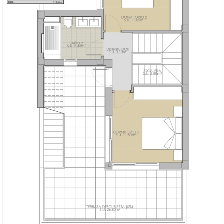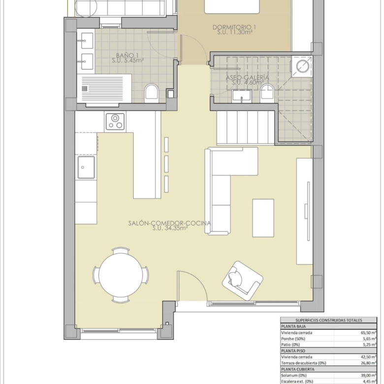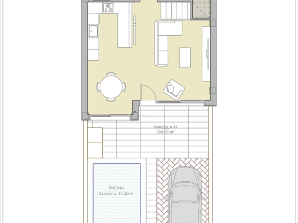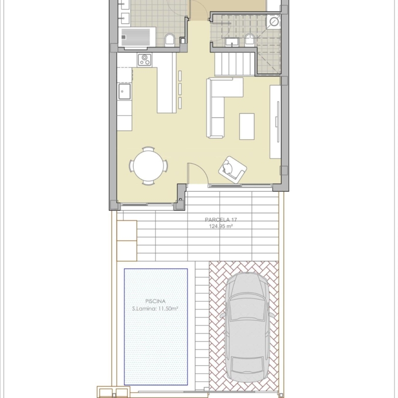 Eigenschappen heeft 3 slaapkamers, 2 badkamers, gastentoilet, open keuken met woonkamer en directe toegang tot het terras, prive tuin met de parkeerplaats.