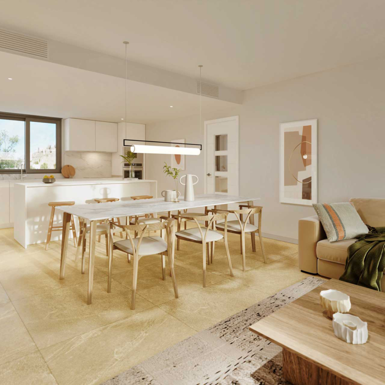 Het interieur van de woningen in deze residentie in Estepona is ontworpen met een focus op kwaliteit en comfort. De woningen zijn beschikbaar in configuraties van 2 en 3 slaapkamers, met 2 of 3 badkamers, aangepast aan de behoeften van verschillende gezinnen. De afwerkingen omvatten porseleinen tegelvloeren, die een moderne en elegante uitstraling geven. De woningen zijn volledig gemeubileerd en uitgerust met hoogwaardige apparatuur. Technologie speelt ook een belangrijke rol, met domoticasystemen, vloerverwarming en elektrische rolluiken, wat zorgt voor een comfortabele en efficiënte omgeving. Ingebouwde kasten bieden veel opbergruimte, terwijl de video-intercom een extra beveiligingsniveau toevoegt.