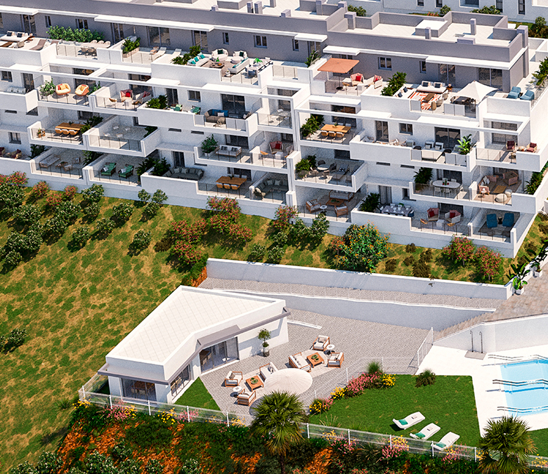 De buitenruimtes van dit residentieel in Manilva zijn ontworpen om optimaal te genieten van het mediterrane klimaat. Elke woning heeft een privéterras, perfect om buiten te ontspannen. Bovendien bieden sommige woningen privé-tuinen, die extra ruimte bieden voor recreatie en ontspanning. De gemeenschap beschikt ook over ruime groene zones, ideaal om te wandelen en van de natuur te genieten zonder het huis te verlaten. De nabijheid van de zee, op slechts 1,2 kilometer, voegt een speciale aantrekkingskracht toe, waardoor u vanaf bepaalde locaties van zeezicht kunt genieten.