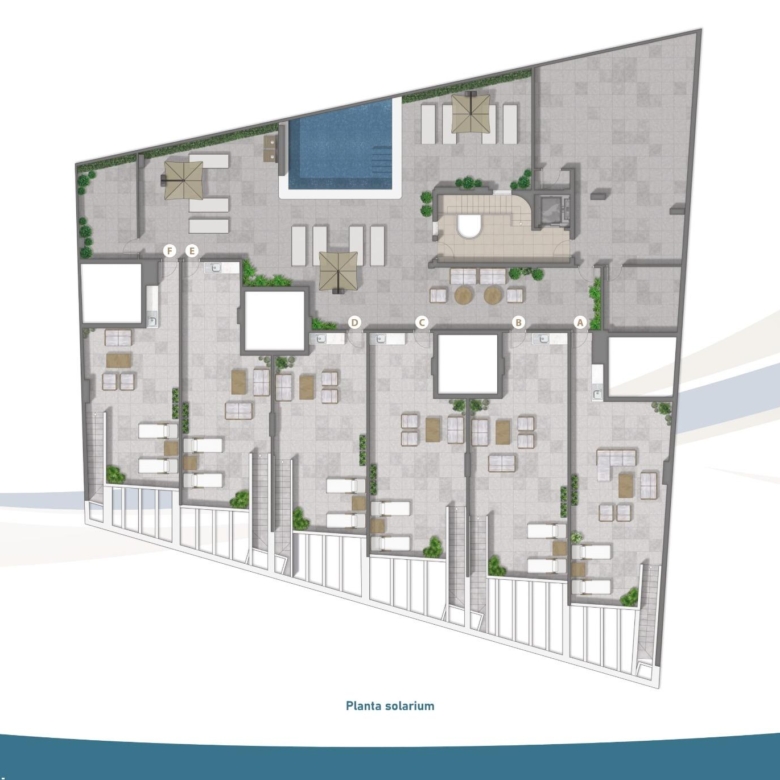 Zes penthouses op de 2e verdieping hebben een uniek kenmerk – directe toegang tot hun privésolarium via hun terrassen.