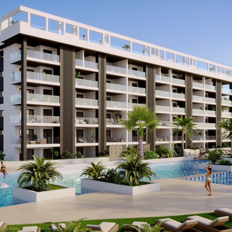 Nieuwbouw wooncomplex van 362 appartementen met grote gemeenschappelijke ruimtes in Torrevieja.