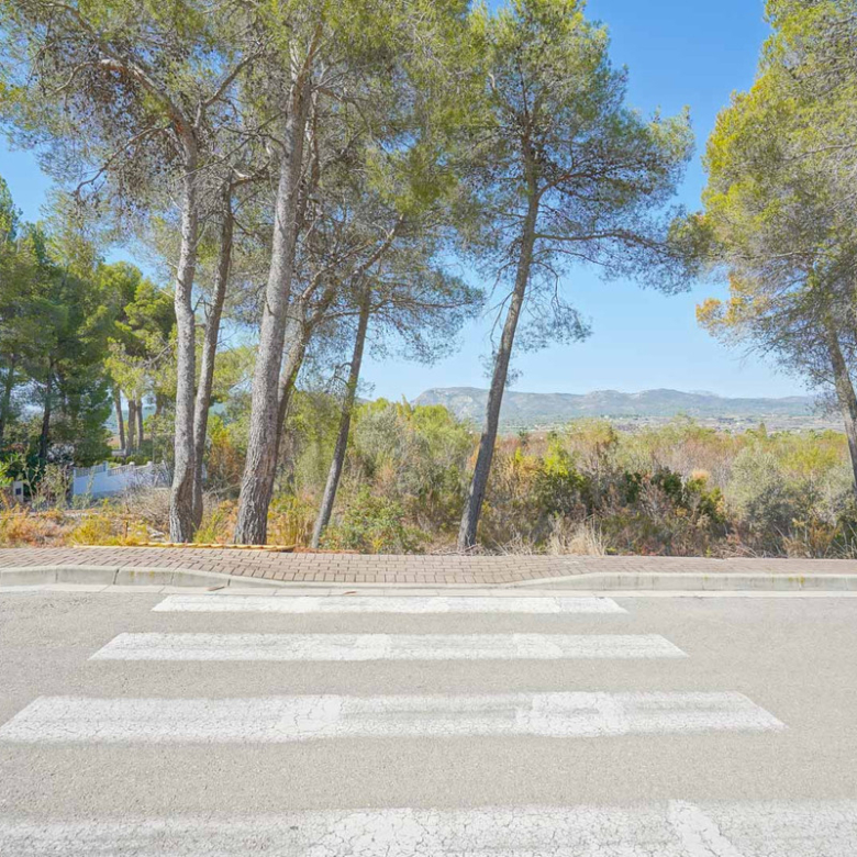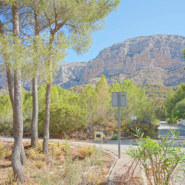 Dit grote grondstuk is gelegen op de zuidelijke flank van de Montgó. An de zuidkant is er een mooi open uitzicht over de vallei en de bergen en aan de noordkant kunt u van dichtbij genieten van de impressionante rotswanden van de Montgó. Het grondstuk is licht hellend en gelegen op de hoek van twee straten die al volledig geürbaniseerd zijn.