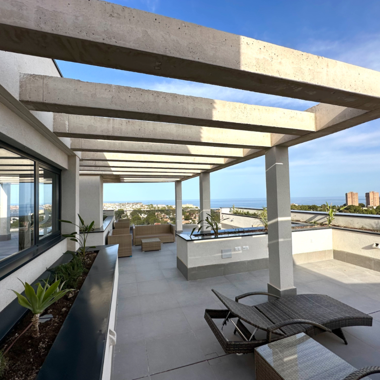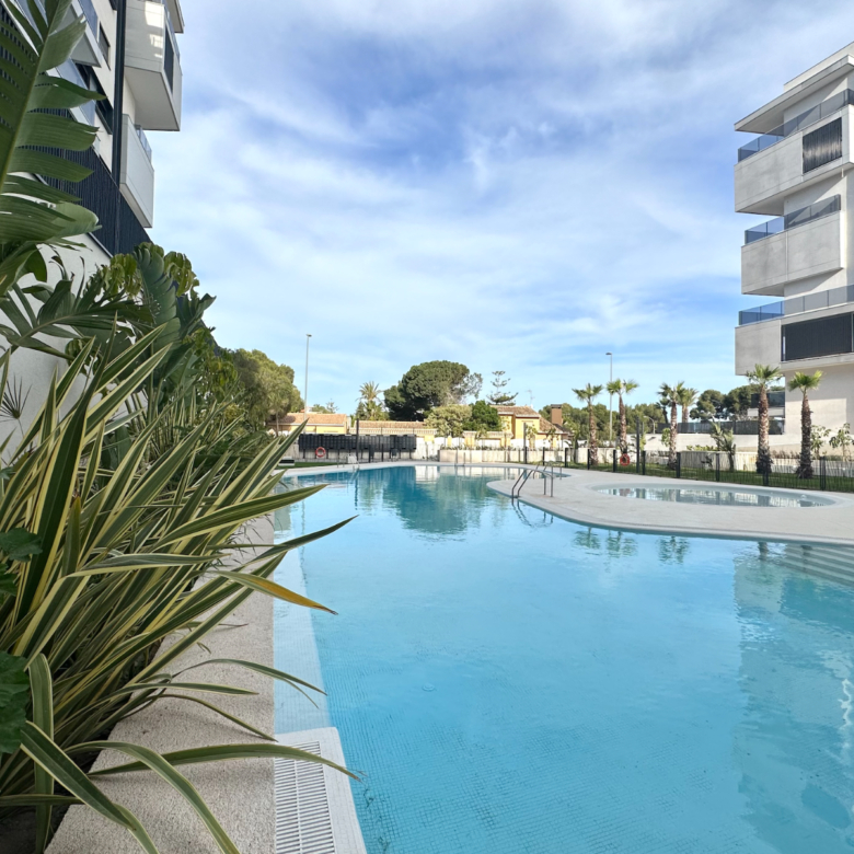 Buiten het appartement wacht een paradijs op u, met twee buitenzwembaden, een binnenzwembad, sauna, fitnessruimte en een gemeenschappelijke ontspanningsruimte waar u kunt socializen met buren en vrienden. Het gemeenschappelijke solarium met bar biedt een prachtige omgeving om te genieten van een drankje terwijl u geniet van het panoramische uitzicht.