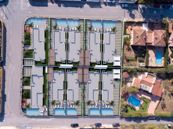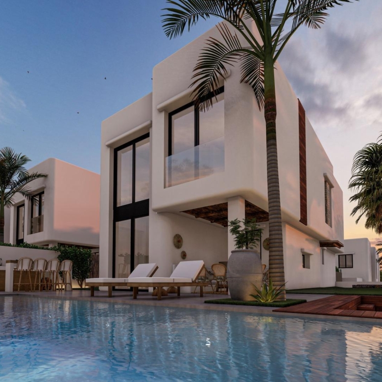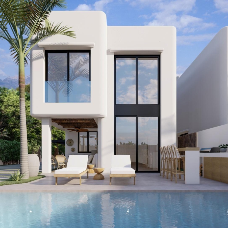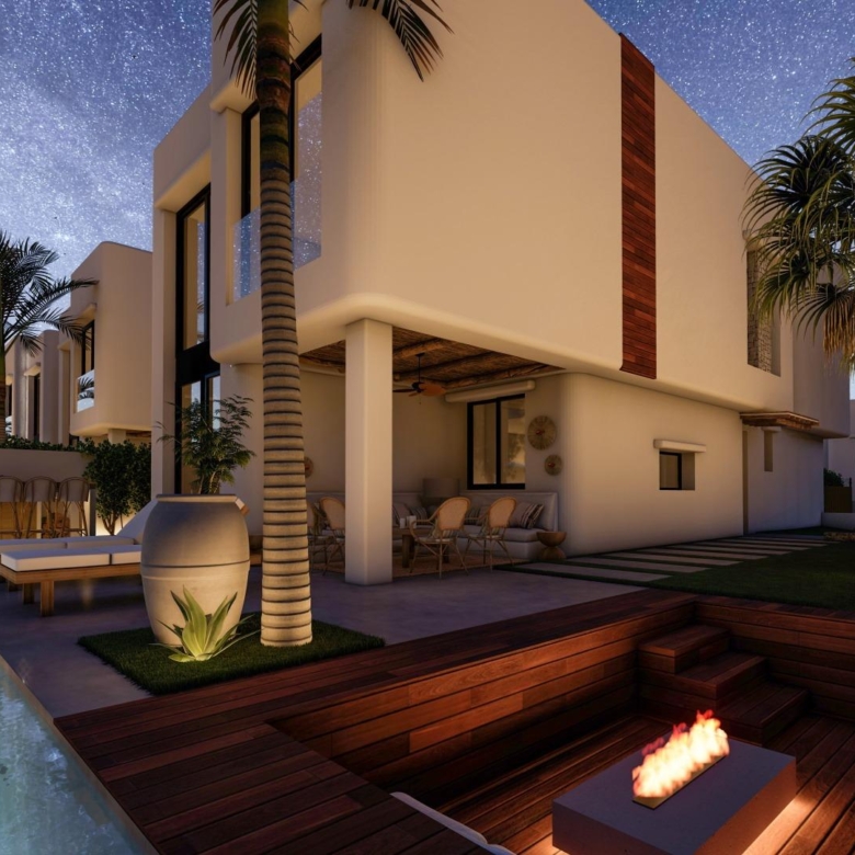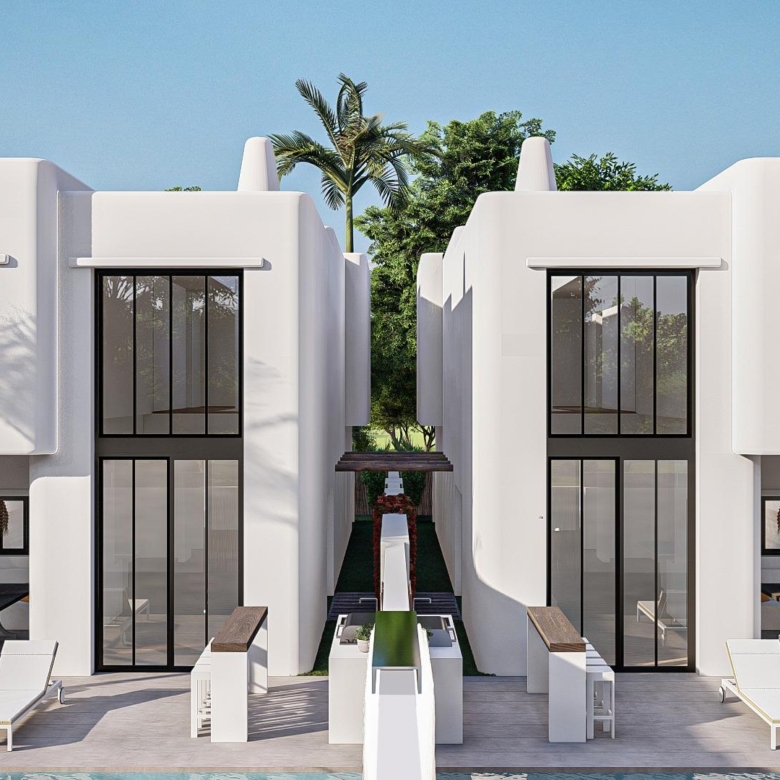 Deze 17 villa’s zijn zorgvuldig ontworpen om hedendaags comfort te combineren met de tijdloze elegantie van de Ibiza-architectuur. Witte gevels, natuurlijke houtsoorten zoals dennen en sabina en stenen elementen vangen het heldere mediterrane licht. Elke woning heeft een eigen perceel, een aangelegde tuin en een privézwembad met geïntegreerde jacuzzi. Ruime terrassen, een barbecueplaats en een buitenbar creëren de ideale omgeving om het hele jaar door van de mediterrane levensstijl te genieten.