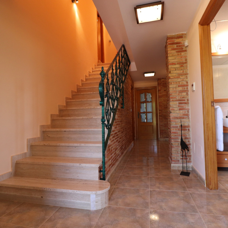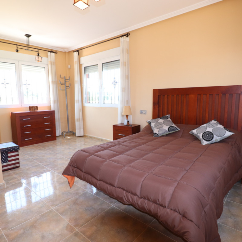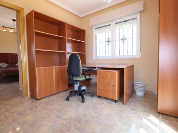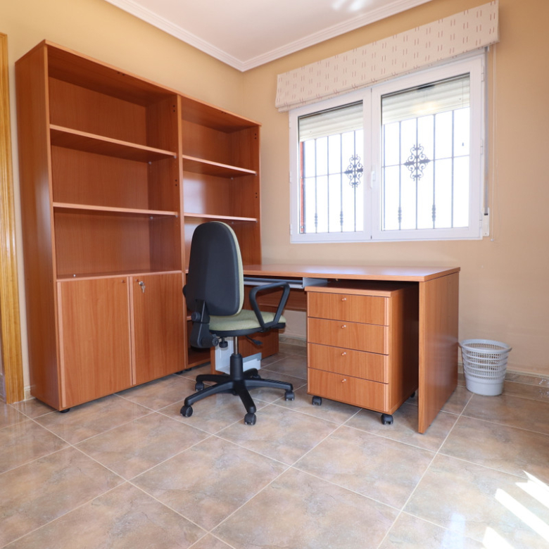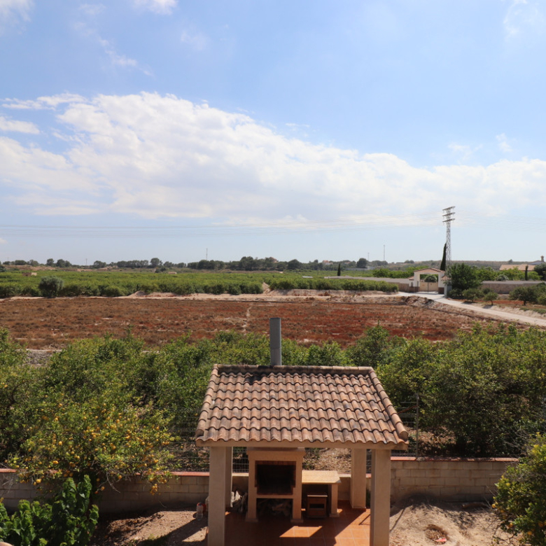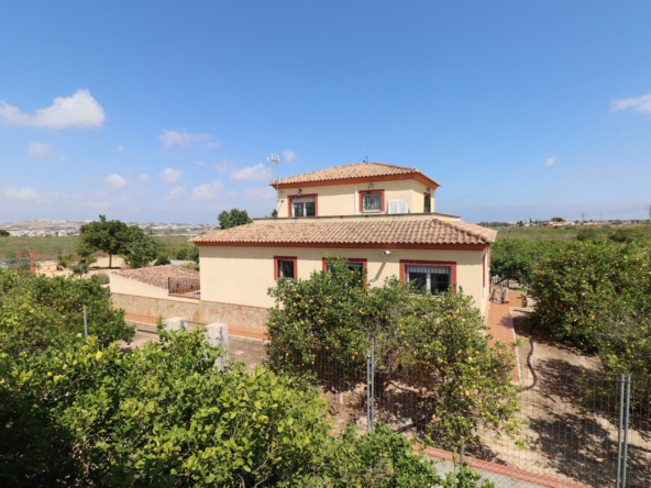Dit luxe drie slaapkamer vrijstaande Country Villa in Algorfa, omgeven door citroenbomen ligt naast de urbanisatie van Montebello net achter de lokale ‘Zoco Sunday Market’. Er zijn tal van voorzieningen allemaal binnen een korte rit, zoals bars, restaurants en de 5 * La Finca Golf, Hotel & Spa Resort net op de weg. Deze accommodatie bestaat in het hoofdgebouw van een aparte volledig ingerichte keuken met eethoek, ruime woon / eetkamer met toegang naar het terras voorzijde bedekt, drie slaapkamers, de master met een eigen badkamer met douche en een familie badkamer met douche. Interne trap leidt naar het dak solarium, waar u een prachtig uitzicht over de hele plot van citroenbomen en het platteland. Er is ook een 100m2 kelder garage, een kleine extra woning mogelijk voor meer accommodatie, een buiten barbecue, een reservoir voor de bomen, een waterput, etc..