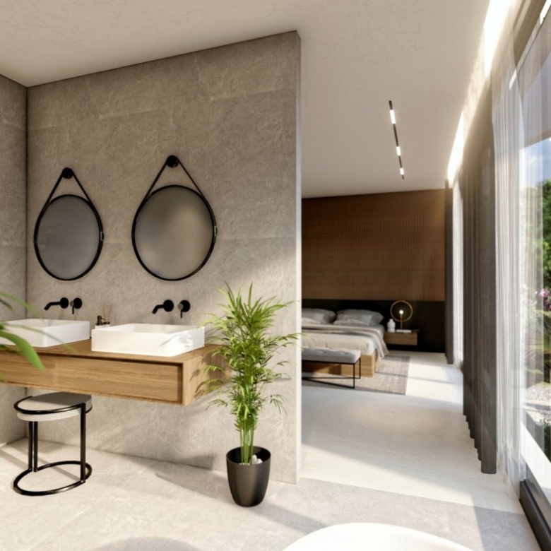 Op de 1e verdieping vindt u een ruime slaapkamer, 2 slaapkamers met en-suite badkamers met prachtig uitzicht op de zee en de omgeving. Slaapkamers hebben grote ramen waardoor er veel natuurlijk licht binnenkomt.