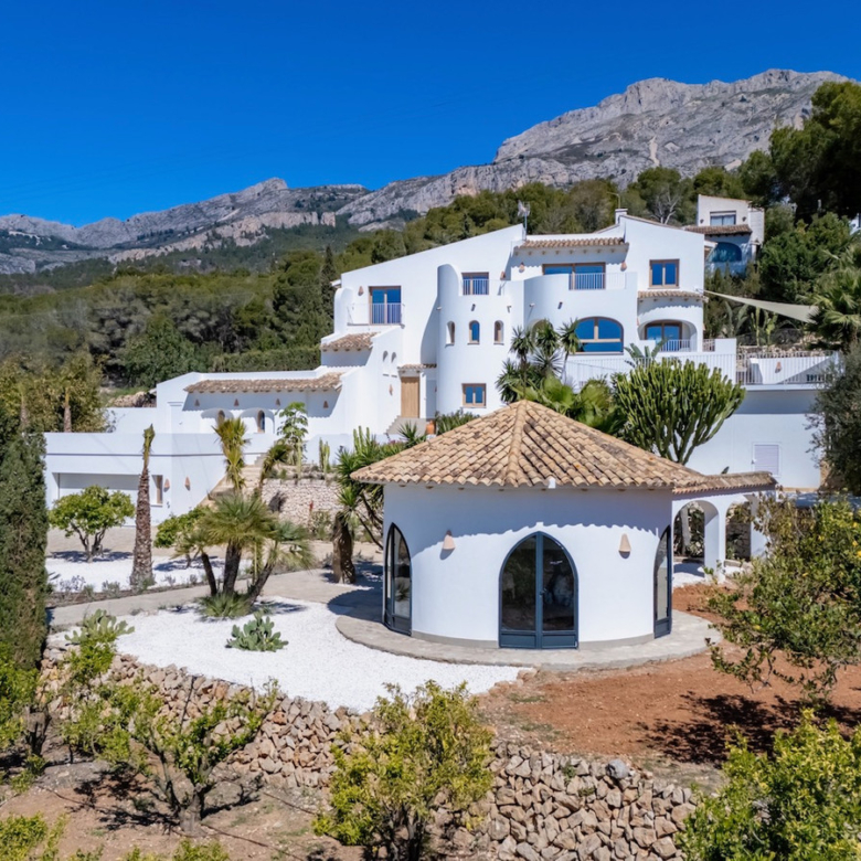 Boven in Altea, rustig gelegen tussen witgekalkte huizen en de groene hellingen van de Sierra de Bernia, ligt deze uitnodigende villa met prachtig uitzicht op de Middellandse Zee en de skyline van Benidorm. Omgeven door volwassen tuinen en citrusbomen biedt de woning privacy, rust en frisse lucht – perfect om van het leven aan de Costa Blanca te genieten.