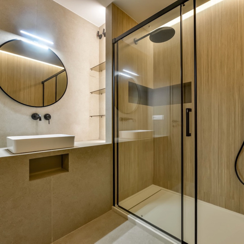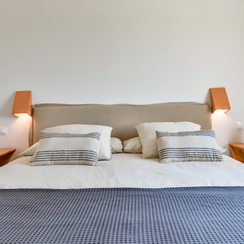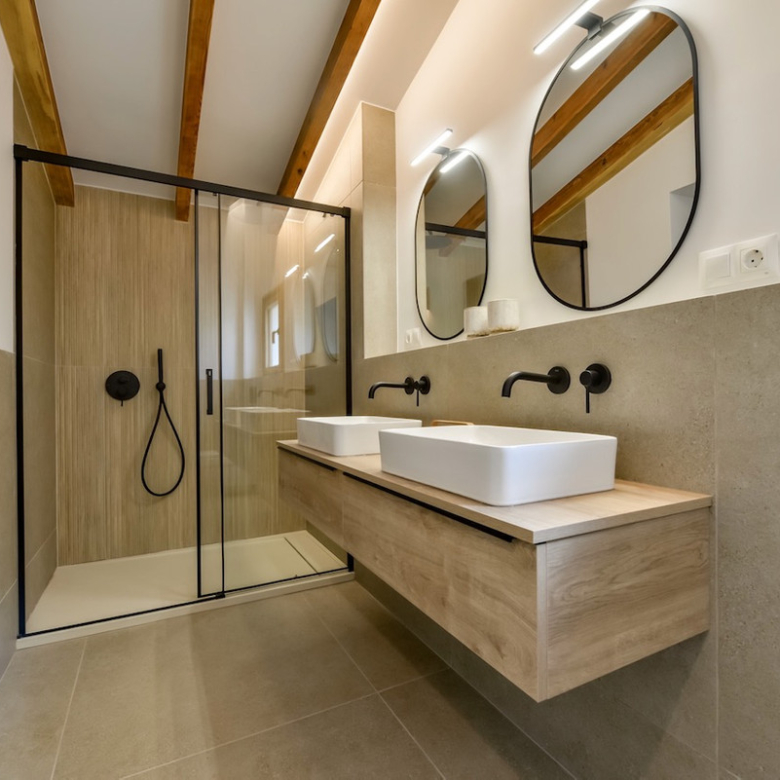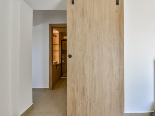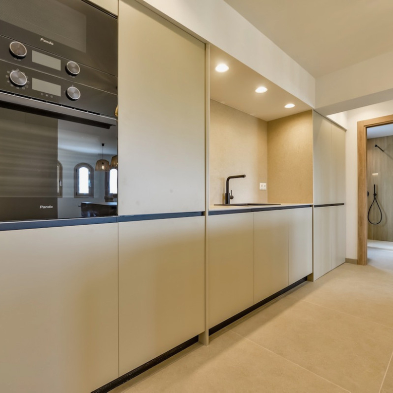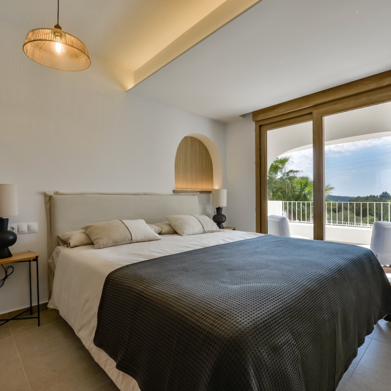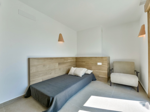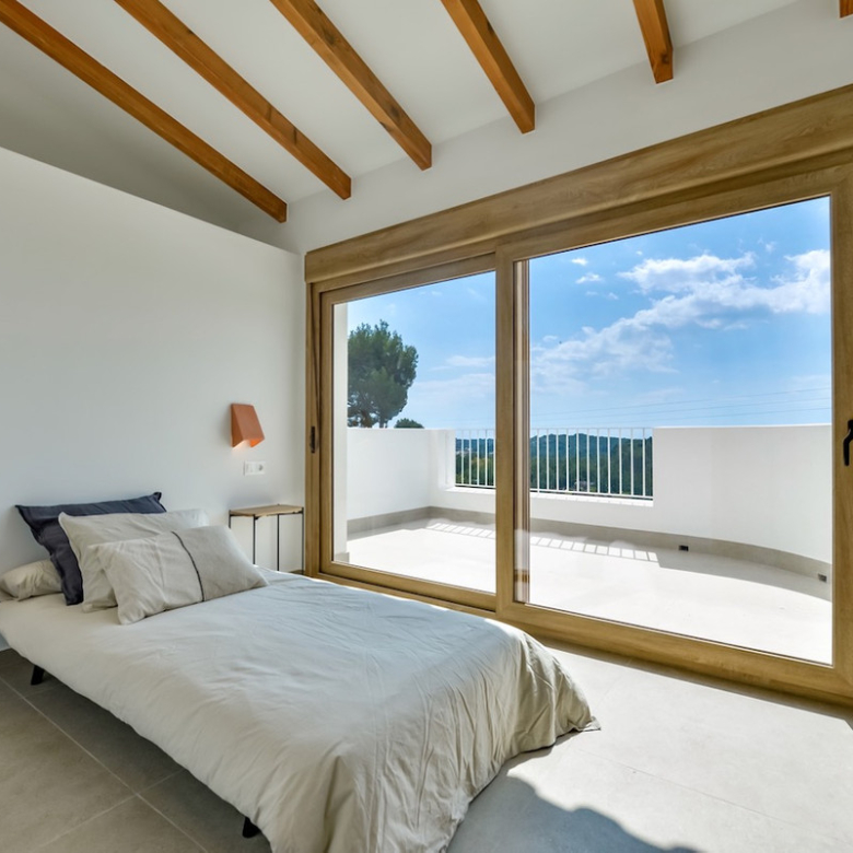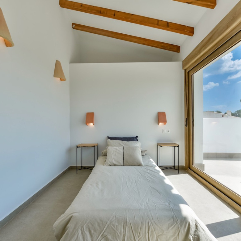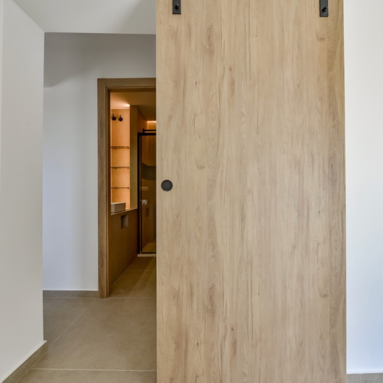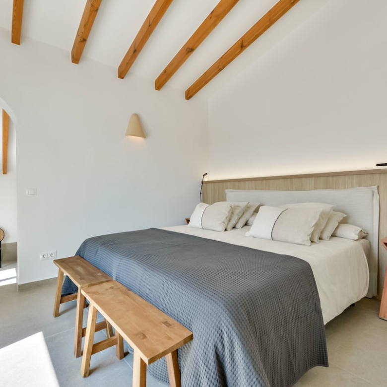 Binnen vindt u een lichte, open woonruimte met grote houten ramen en natuurstenen details die zorgen voor een warme, prettige sfeer. De keuken is volledig uitgerust met hoogwaardige apparatuur en Arklam werkbladen. Elke slaapkamer heeft toegang tot een eigen terras. Daarnaast is er een aparte wijnkelder, een speelkamer en diverse zitplekken buiten.