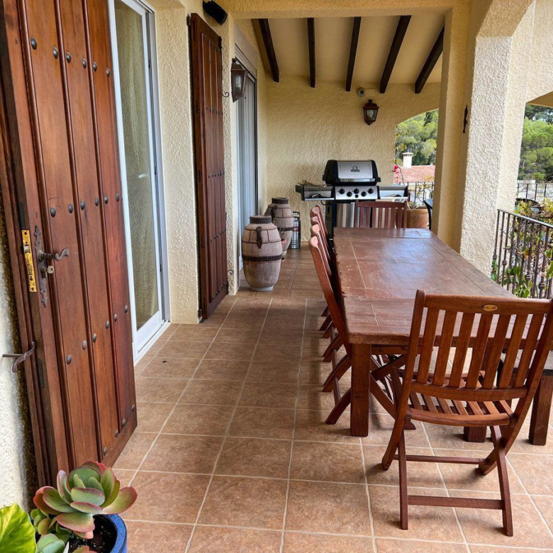 This beautiful home offers many extras,some of which are double glazed windows with electric persians and mosquito nets, ceiling fans, water storage units, gas tank, pump for high water pressure,electric entrance gates, security cameras, infrared heaters on the beautiful covered terrace, outside w.c..petanque court