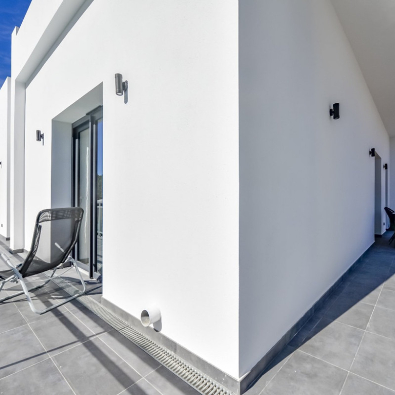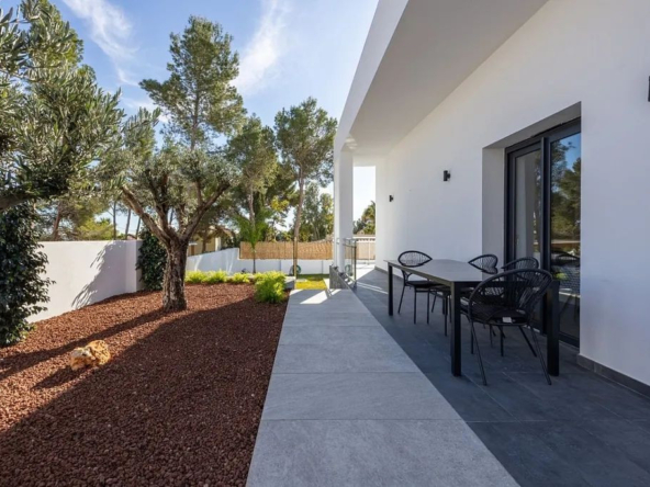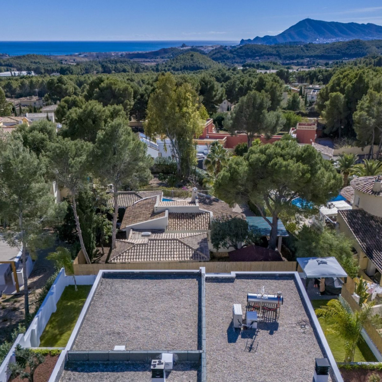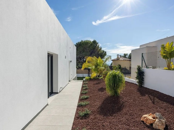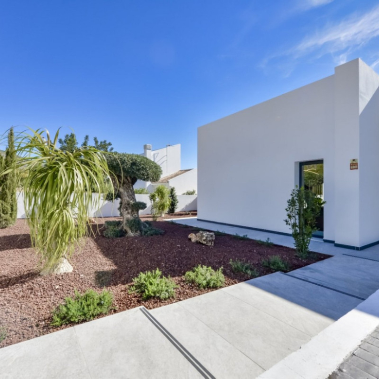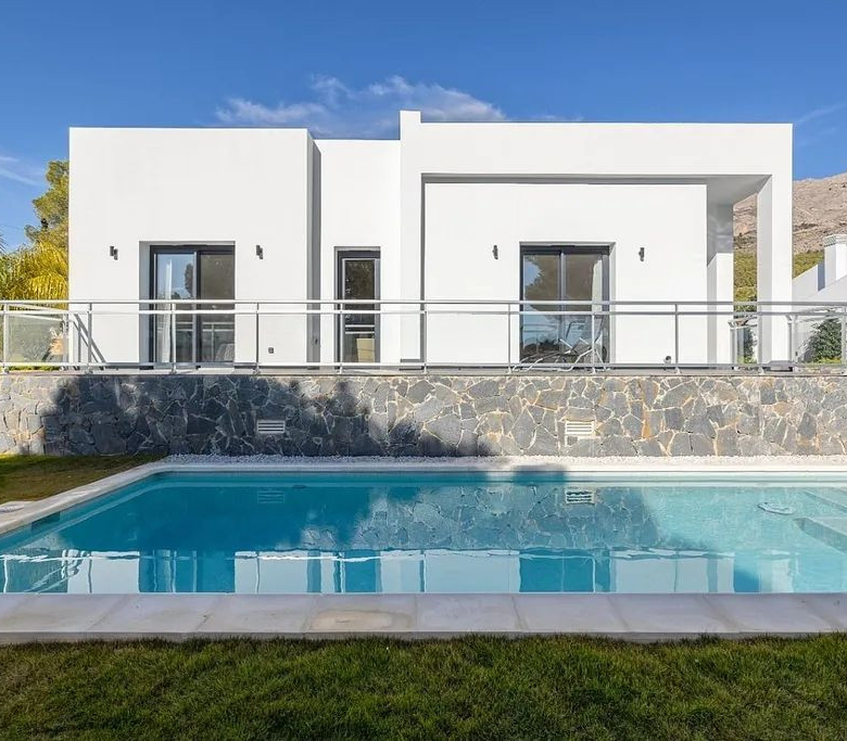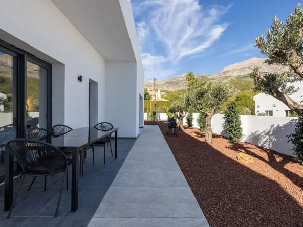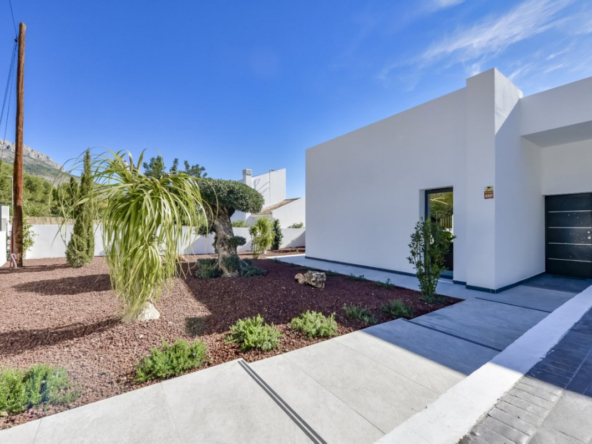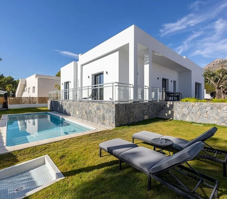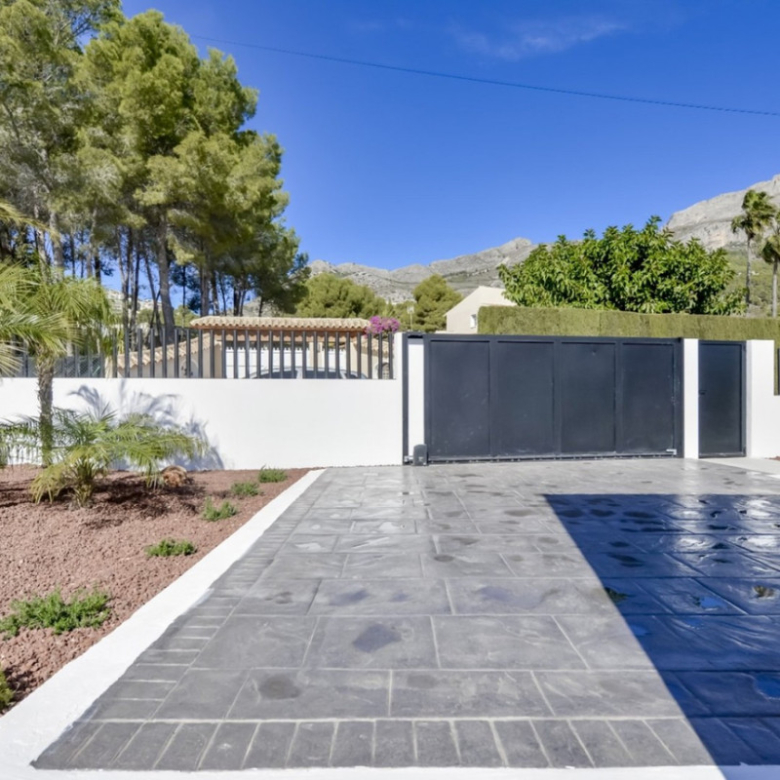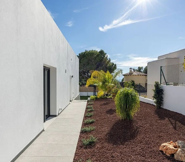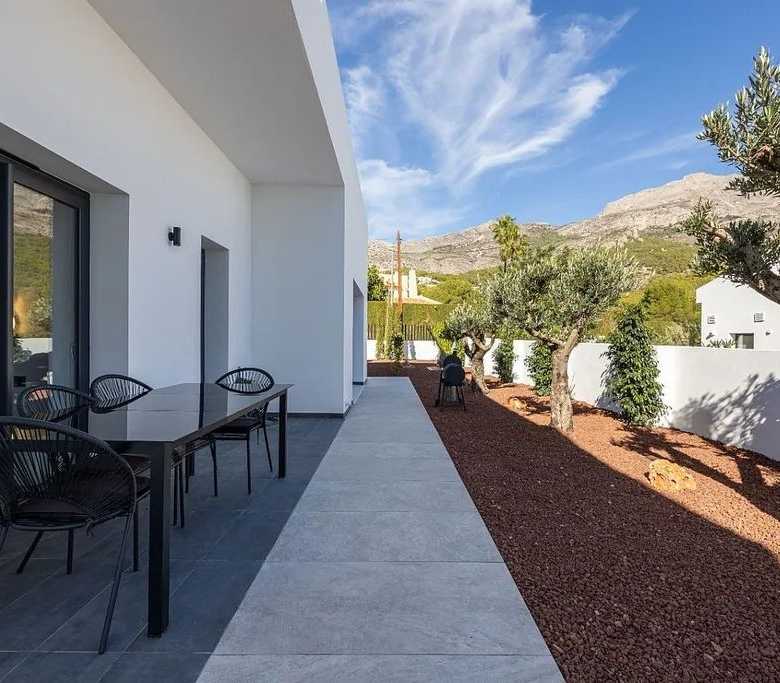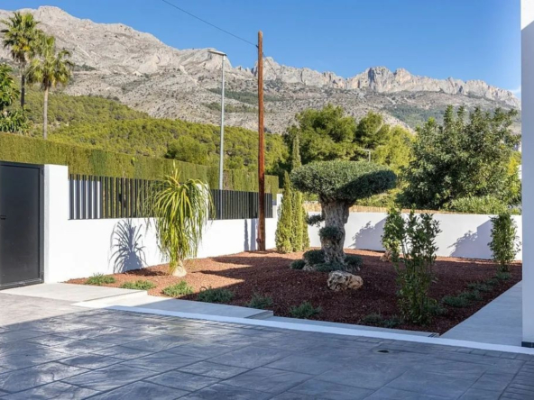 Bijna nieuwe villa te koop, jaar 2021, volledig afgewerkt, gelegen aan de voet van de Sierra Bernia, naast een natuurreservaat, in het rustige dorpje Santa Clara, met prachtig uitzicht op de bergen en de zee. Het huis is op maat ontworpen met slechts één verdieping, volledig beveiligd: geen trappen of treden en biedt de eigenaren een woonoppervlakte van bijna 200 vierkante meter. Daarnaast is er een parkeerplaats voor 2 auto’s met automatische poort en een zwembad van 27 vierkante meter met zoutfilter en pre-installatie voor warm water. De unieke locatie wordt gekenmerkt door de afwezigheid van massale urbanisaties en de volledige integratie in de natuurlijke omgeving zorgt voor een sfeer van rust en kalmte. Toch ligt het op een strategische locatie die toegang biedt tot de prestigieuze golfbaan Don Cayo en het strand van Villa Gadea, tot toeristische gebieden zoals Benidorm en Calpe, en tot de stedelijke infrastructuur van Altea La Vella. Het perceel ligt in een doodlopende straat, wat privacy en rust biedt, met buren uit België, Nederland, Duitsland die er het hele jaar door wonen. De villa is gebouwd in 2021 en de tuin en het zwembad waren klaar in 2023. Binnen vind je 4 slaapkamers, waarvan een met en-suite badkamer met bad en douche en een ruime kleedkamer. De tweede slaapkamer heeft een doucheruimte en een sauna met Harvia Finse houtkachel. Er is ook een grote woonkamer met 3,3 meter hoge plafonds (net als in alle slaapkamers van het huis), een Langusta houtkachel van Franse makelij met elektronische bediening. Het huis wordt omringd door een prachtige tuin met olijfbomen, waarvan er een meer dan duizend jaar oud is (meegebracht uit Portugal), natuurlijk gazon en is uitgerust met automatische irrigatie. De villa heeft energie-efficiëntie categorie ‘A’, centrale airconditioning voor verwarming en koeling, PVC ramen van hoge kwaliteit en uitstekende geluidsisolatie.