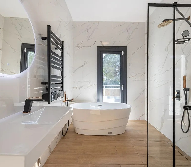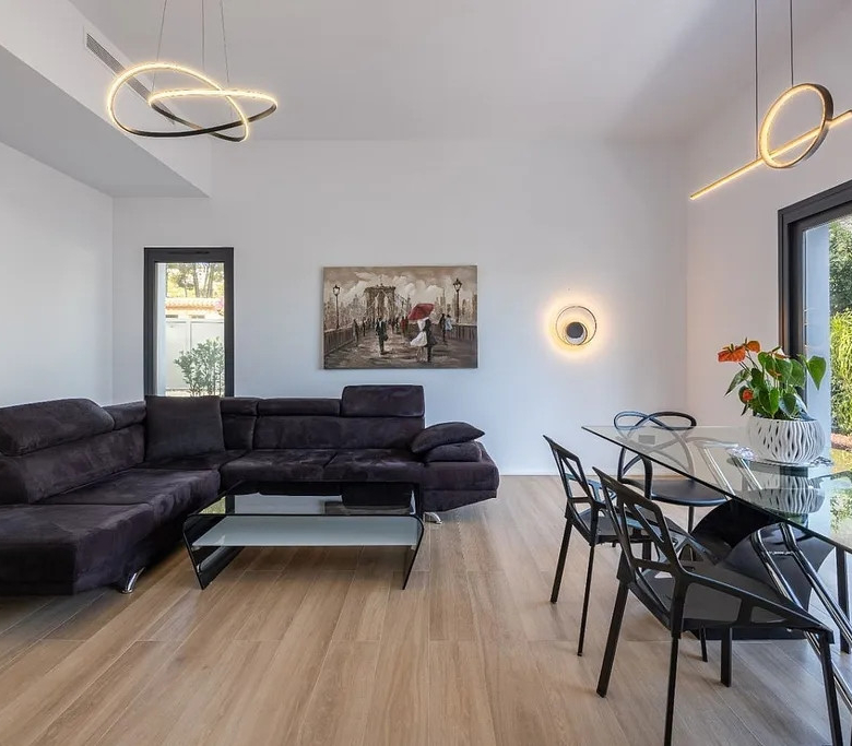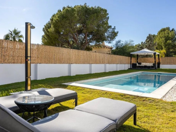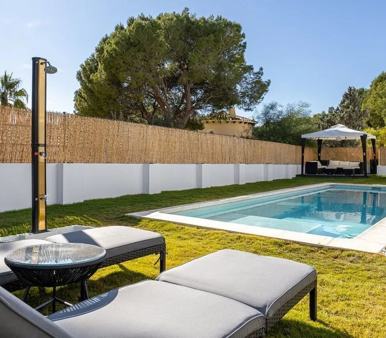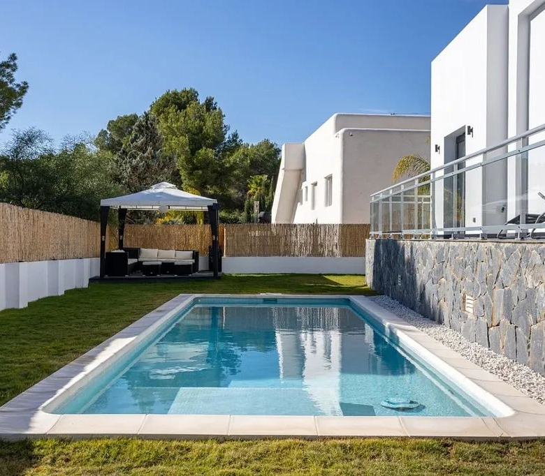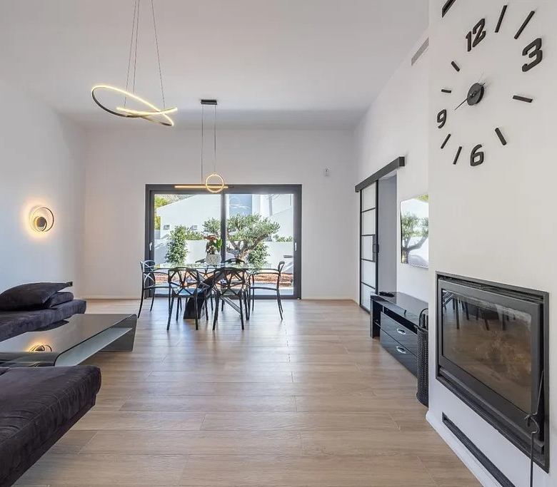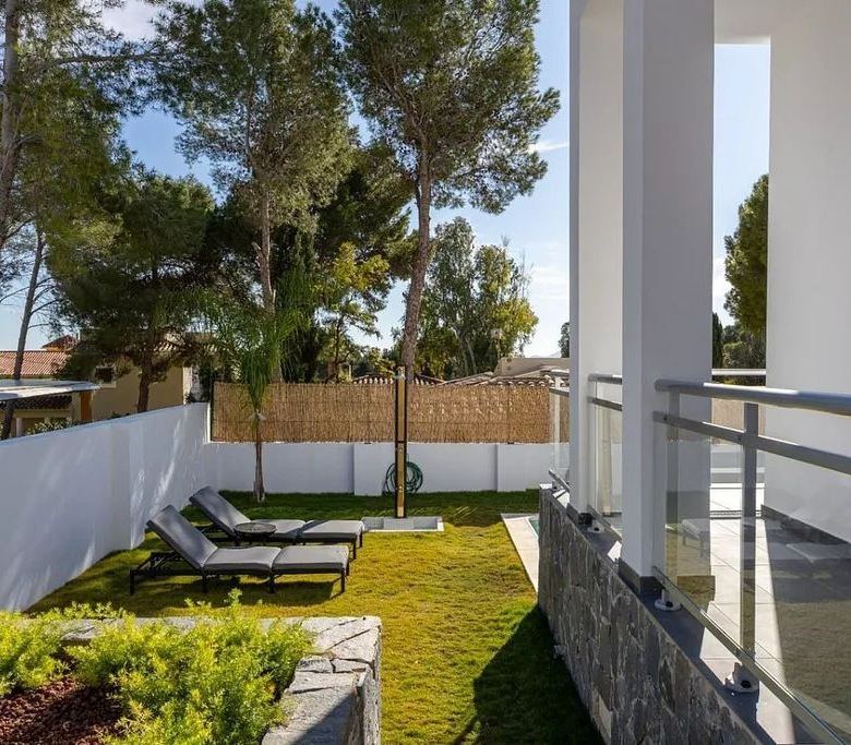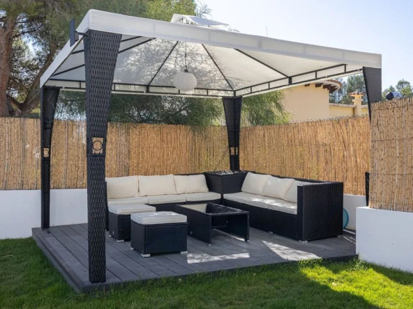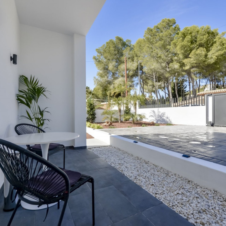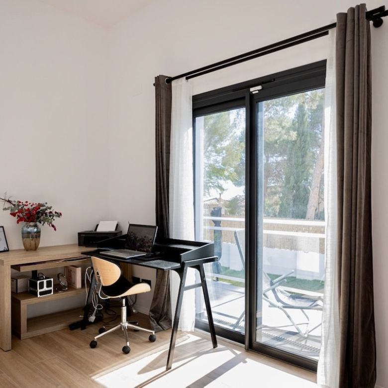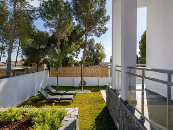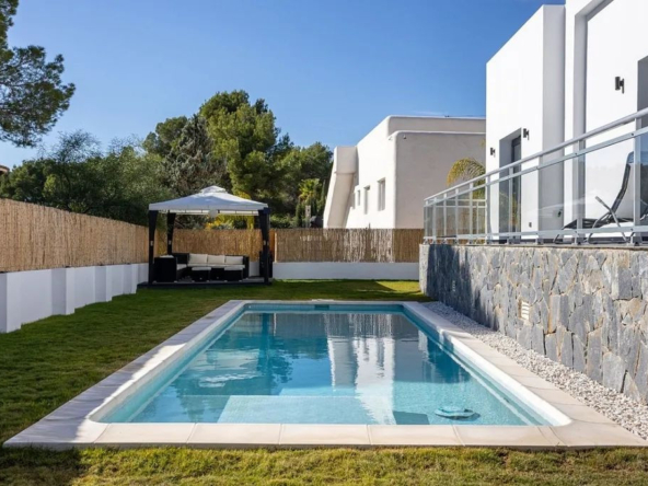 Bijna nieuwe villa te koop, jaar 2021, volledig afgewerkt, gelegen aan de voet van de Sierra Bernia, naast een natuurreservaat, in het rustige dorpje Santa Clara, met prachtig uitzicht op de bergen en de zee. Het huis is op maat ontworpen met slechts één verdieping, volledig beveiligd: geen trappen of treden en biedt de eigenaren een woonoppervlakte van bijna 200 vierkante meter. Daarnaast is er een parkeerplaats voor 2 auto’s met automatische poort en een zwembad van 27 vierkante meter met zoutfilter en pre-installatie voor warm water. De unieke locatie wordt gekenmerkt door de afwezigheid van massale urbanisaties en de volledige integratie in de natuurlijke omgeving zorgt voor een sfeer van rust en kalmte. Toch ligt het op een strategische locatie die toegang biedt tot de prestigieuze golfbaan Don Cayo en het strand van Villa Gadea, tot toeristische gebieden zoals Benidorm en Calpe, en tot de stedelijke infrastructuur van Altea La Vella. Het perceel ligt in een doodlopende straat, wat privacy en rust biedt, met buren uit België, Nederland, Duitsland die er het hele jaar door wonen. De villa is gebouwd in 2021 en de tuin en het zwembad waren klaar in 2023. Binnen vind je 4 slaapkamers, waarvan een met en-suite badkamer met bad en douche en een ruime kleedkamer. De tweede slaapkamer heeft een doucheruimte en een sauna met Harvia Finse houtkachel. Er is ook een grote woonkamer met 3,3 meter hoge plafonds (net als in alle slaapkamers van het huis), een Langusta houtkachel van Franse makelij met elektronische bediening. Het huis wordt omringd door een prachtige tuin met olijfbomen, waarvan er een meer dan duizend jaar oud is (meegebracht uit Portugal), natuurlijk gazon en is uitgerust met automatische irrigatie. De villa heeft energie-efficiëntie categorie ‘A’, centrale airconditioning voor verwarming en koeling, PVC ramen van hoge kwaliteit en uitstekende geluidsisolatie.