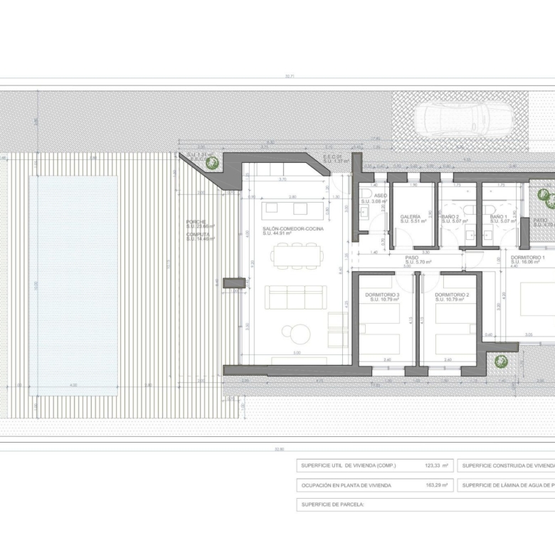 Villa met 3 slaapkamers, 2 badkamers open keuken met woonkamer, terras, prive tuin met het zwembad en parkeerplaats.