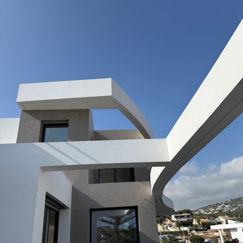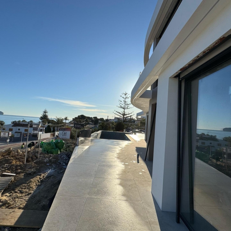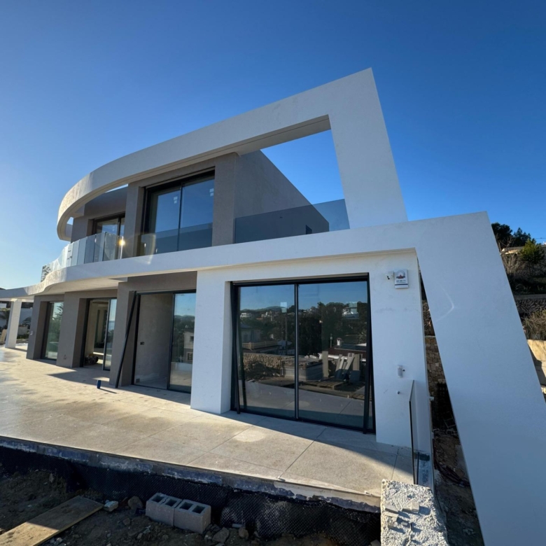 Nieuwbouw luxe villa gebouwd op een groot perceel van 1250m2, met prachtig uitzicht op zee en open uitzicht richting Moraira.