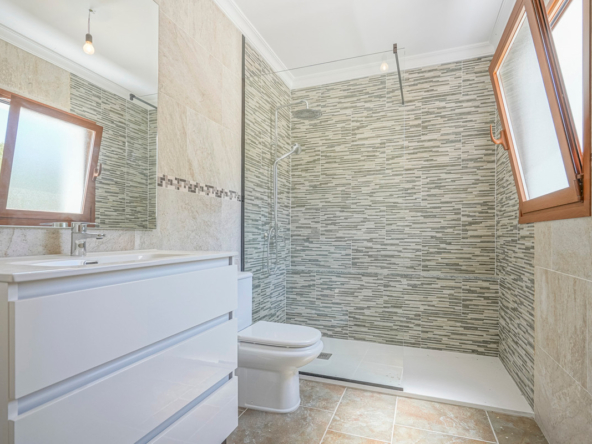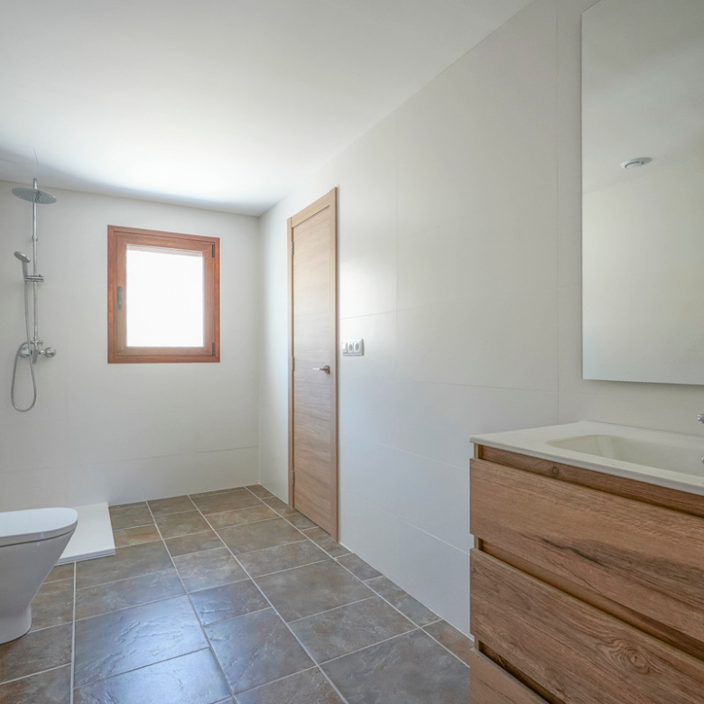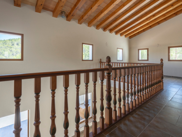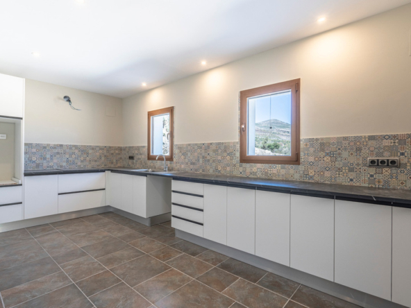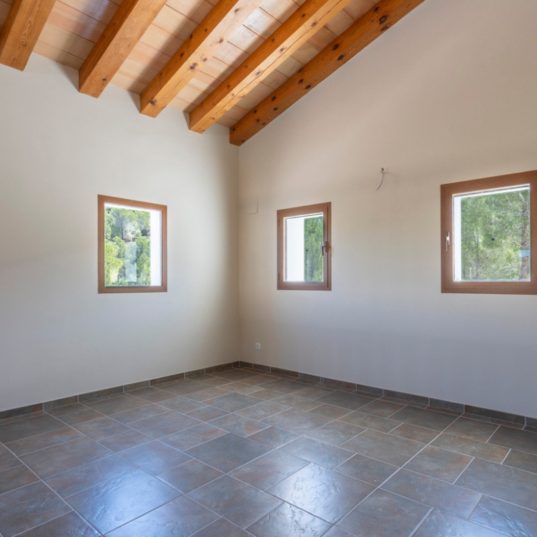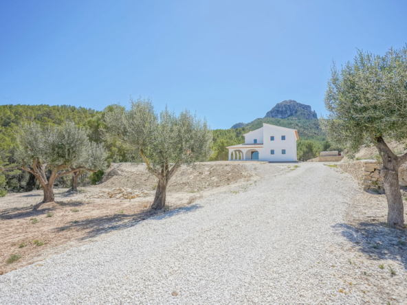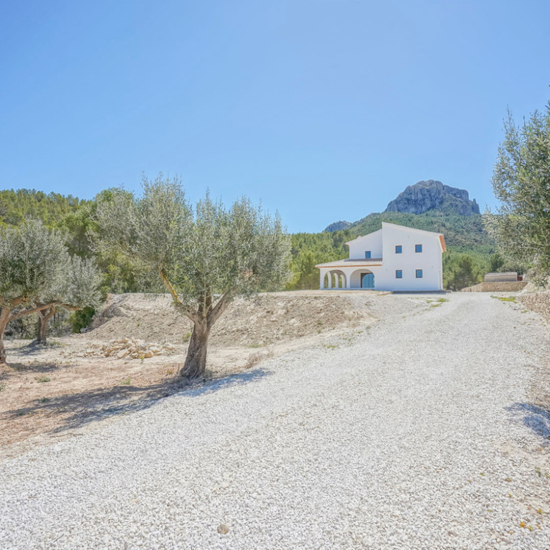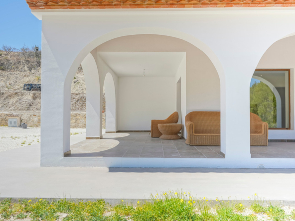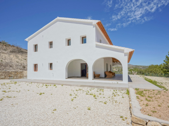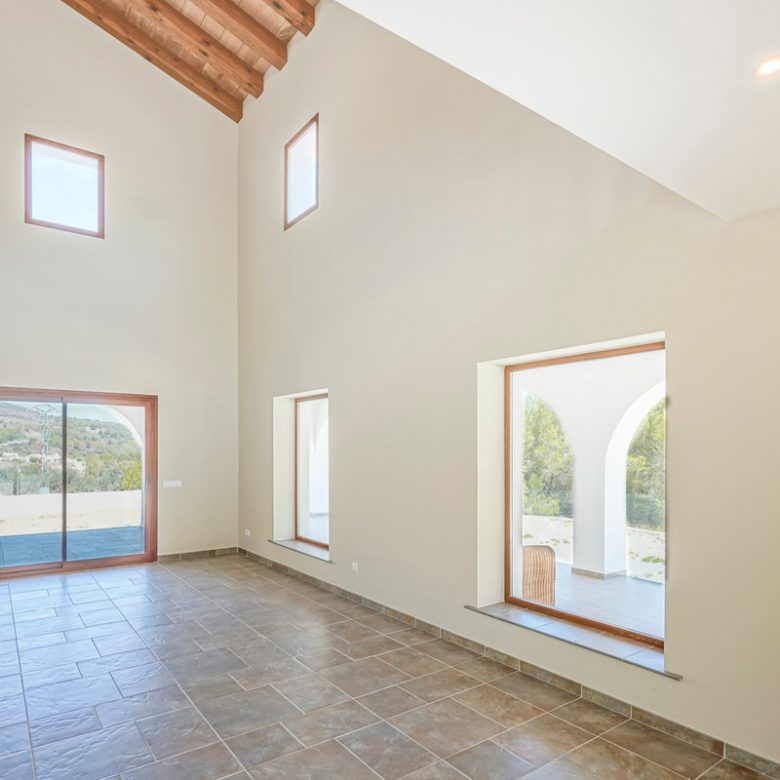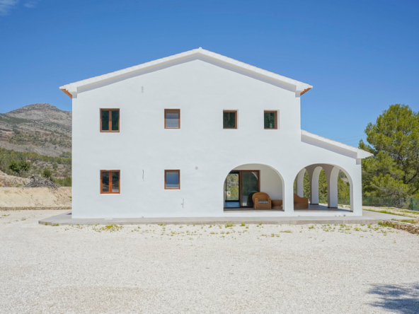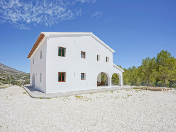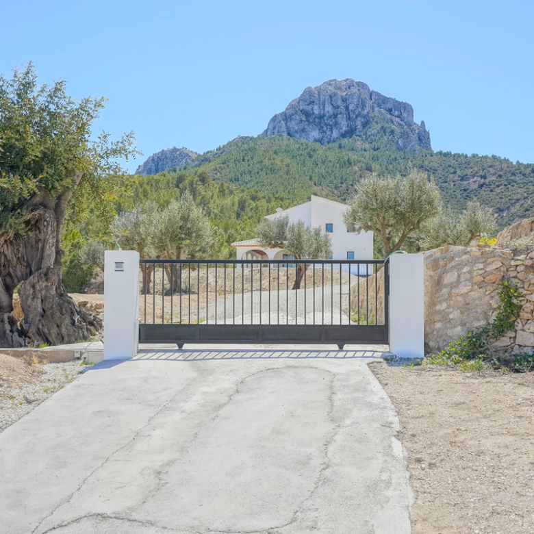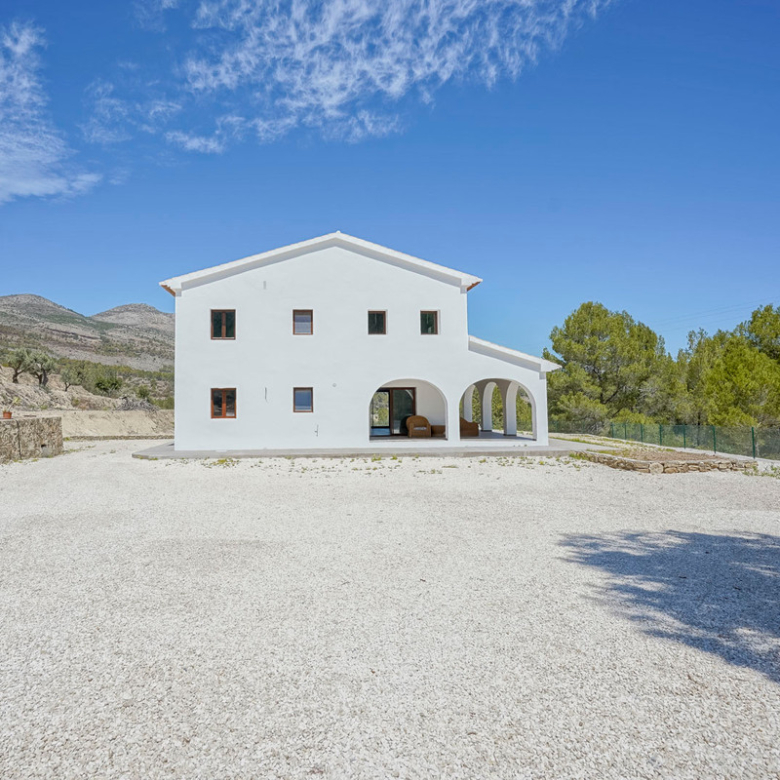 Via een automatische poort bereik je een brede toegangsweg die door meerdere olijfbomen tot aan de villa leidt. De villa is verdeeld over twee verdiepen en heeft een zeer grote “Riurau”, een typische landelijke constructie van de Marina Alta die zich zowel aan noord-, de oost-, als de zuidkant van de villa bevindt. Op de begane grond vinden we de keuken, een gastentoilet en een grote slaapkamer met eigen badkamer, evenals een praktische bergruimte onder de trap. Op de bovenverdieping is er een ouderslaapkamer met badkamer en suite en een kleine kleedkamer, evenals nog een slaapkamer met badkamer en suite. De badkamer is ontworpen met de mogelijkheid om te worden verdeeld in twee, en er is de mogelijkheid om een extra vierde slaapkamer te maken. De grote ramen die de hele gevel sieren garanderen een uitzonderlijke lichtinval in alle ruimtes van het huis. Op het grondstuk bevindt zich nog een tweede kleine constructie met de mogelijkheid deze om te bouwen tot een klein gastenverblijf, garage, opslagruimte, etc. Zowel de benedenverdieping als de bovenverdieping is voorzien van vloerverwarming (gasketel). Watertoevoer is momenteel via een watertank, maar er is voorzien om een waterput te installeren om zo een constante toevoer te hebben. De villa is momenteel in de eindfase van de renovatie en zal nog worden afgewerkt. Een zwembad wordt momenteel aangelegd en is inbegrepen in de prijs. Het zwembad zal tegen oktober 2024 af zijn. Meer informatie en video op aanvraag.