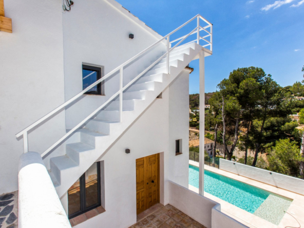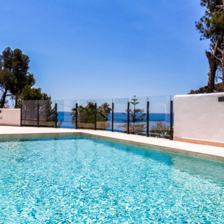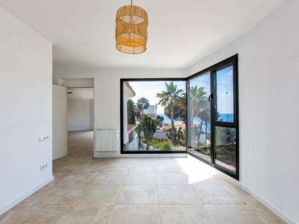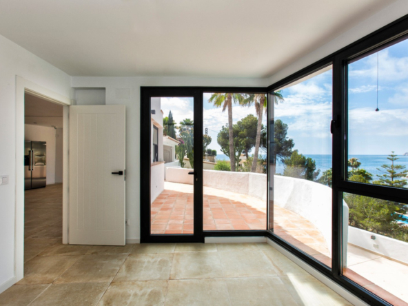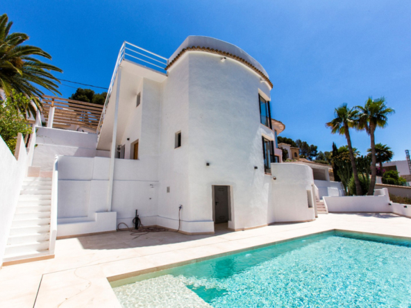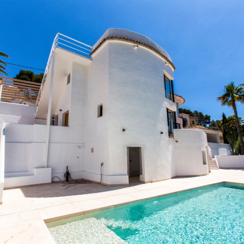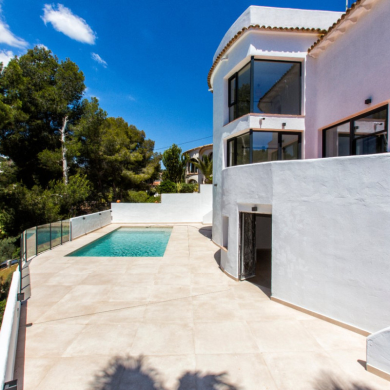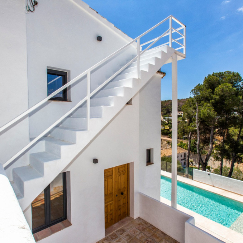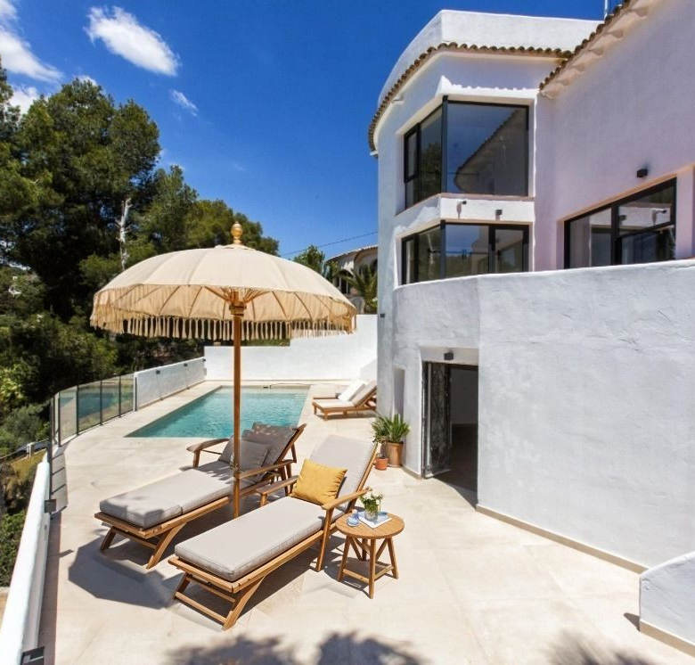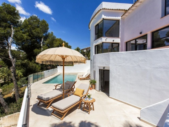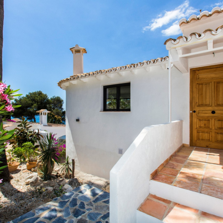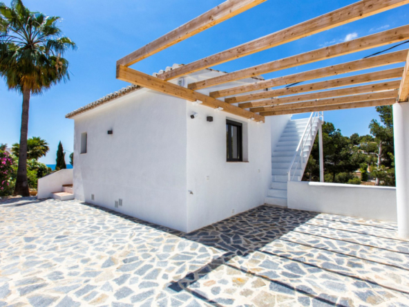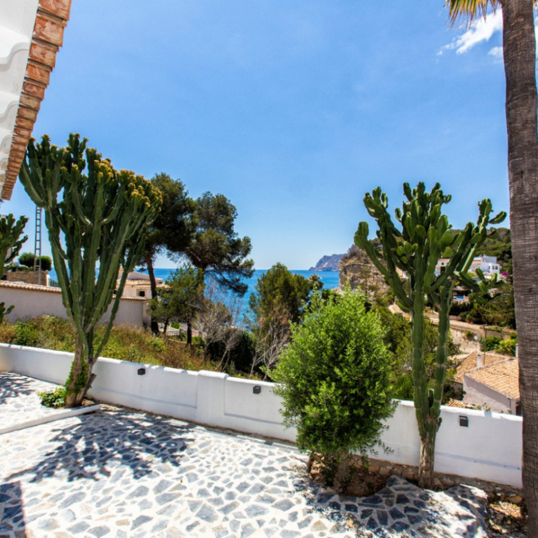 Deze elegant gerenoveerde villa in modern/ibiza-stijl met fantastisch uitzicht op zee ligt in de gewilde woonwijk Cala Advocat aan de Costa Blanca, op slechts 9 minuten rijden van het charmante kustplaatsje Moraira. Na een complete renovatie combineert de woning mediterrane charme met het comfort van modern wonen – ideaal voor iedereen die op zoek is naar iets speciaals.