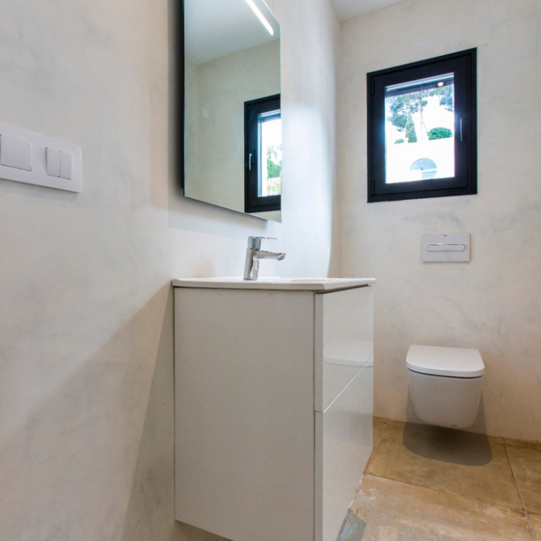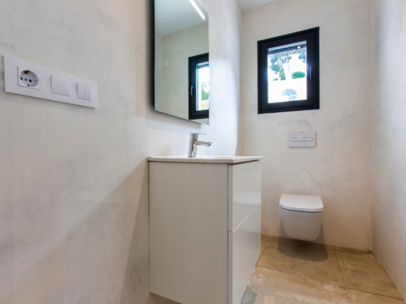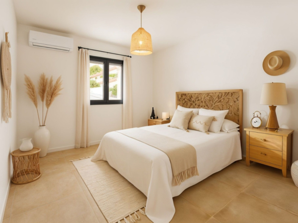 Wij bieden een exclusieve woonervaring met uitzicht op de Middellandse Zee. De villa heeft alle voorzieningen om je nieuwe permanente thuis te worden, waaronder airconditioning warm/koud, ramen met dubbele beglazing van hoge kwaliteit, een alarmsysteem en een fotovoltaïsche installatie. Er is een carport met schuifdeur voor een auto en nog een parkeerplaats achter het barbecuehuis.