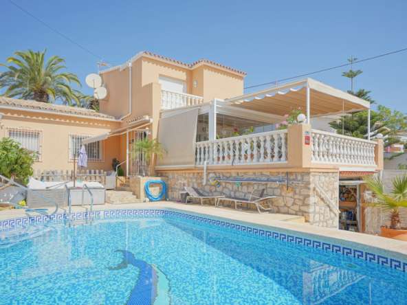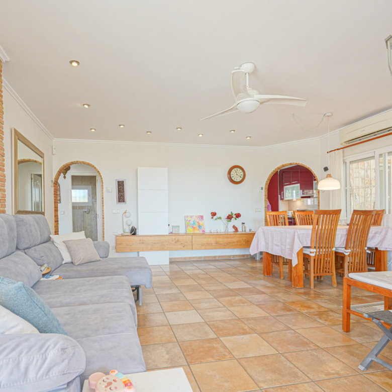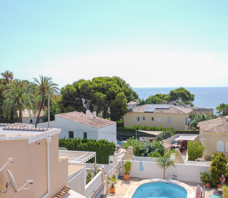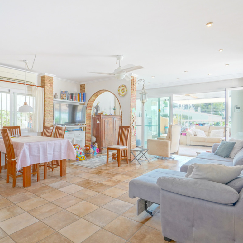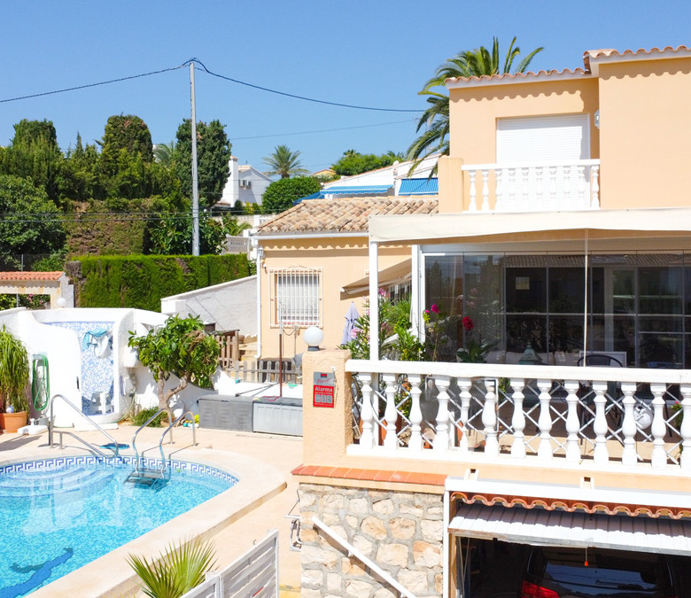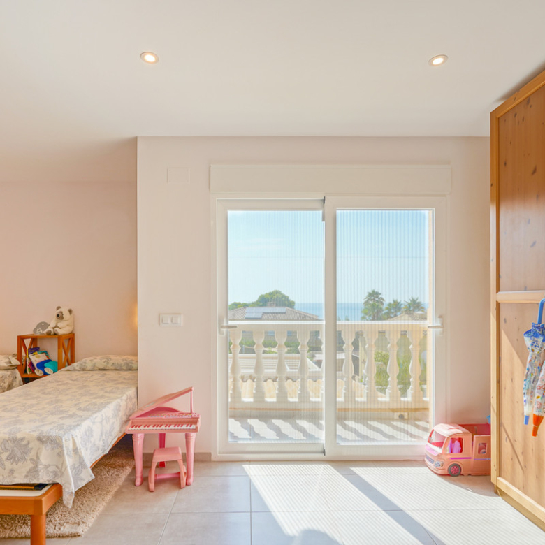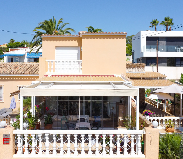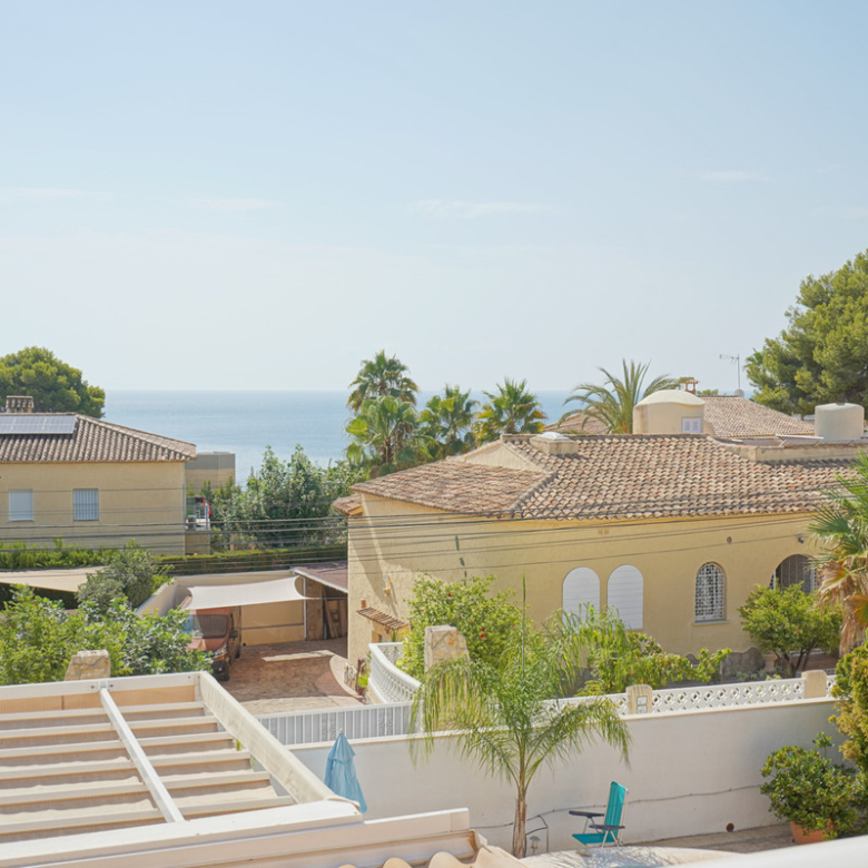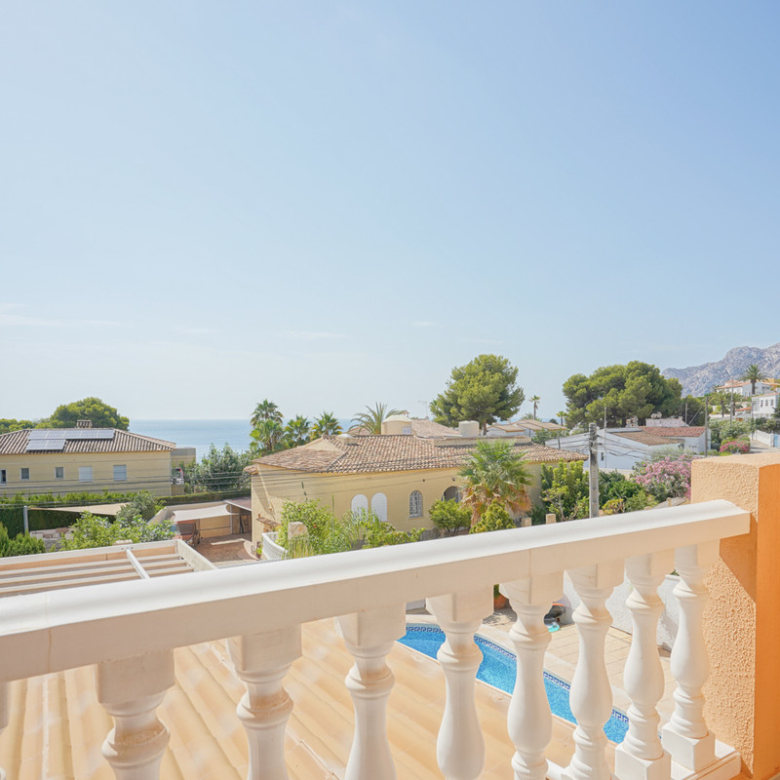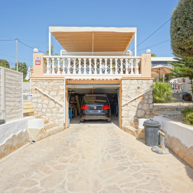 Deze traditionele villa bevindt zich in een rustige urbanisatie aan de idyllische kust van Benissa, op steenworp afstand van het levendige Calpe. Dankzij de unieke locatie geniet u hier van een adembenemend uitzicht op de azuurblauwe zee en de iconische Peñón de Ifach. Verspreid over twee verdiepingen en met een extra garage in de kelderverdieping, biedt deze villa alles wat u nodig heeft. De ruime benedenverdieping bestaat uit een lichte woonkamer, een moderne keuken, een stijlvolle ingeglaasde naya, twee comfortabele slaapkamers, twee badkamers, een dressing en een multifunctionele opslagruimte. De bovenverdieping, bereikbaar via een externe trap, beschikt over een vierdubbele slaapkamer met een eigen badkamer en een balkon, ideaal voor gasten. Geniet van de zon op de diverse terrassen op verschillende hoogtes, of neem een verfrissende duik in het grote ovaalvormige zwembad met warme buitendouche. Met vloerverwarming op de benedenverdieping en infraroodverwarming boven, plus airconditioning op beide verdiepen, ervaart u het hele jaar door ultiem comfort. Op minder dan vijf minuten wandelen bereikt u het pittoreske strandje Mallorquí, waar een schilderachtig wandelpad langs de kust begint en u in één richting naar Calpe brengt en in de andere richting langs de kristalheldere baaien van Benissa tot aan het populaire zanstrandje La Fustera.